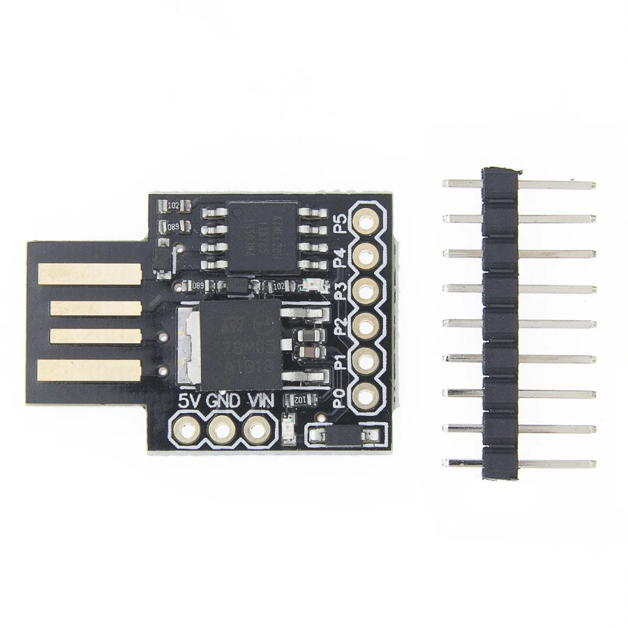 1. Поддержка Arduino IDE 1,0 + (OSX/Windows/Linux).2. Питание через USB или внешний источник или от 7-16 В до 5 В (автоматический выбор).3. Бортовой, 150 мА 5 в регулятор.4. Встроенный USB и последовательный был отладкой).5. 6 контактов ввода/вывода (2 сообщают об USB только в том случае, если ваша программа активно общается по USB, в противном случае вы можете использовать все 6, даже если вы программируете через USB).6. 8 k флэш-память (около 6 k после загрузки).7. I2C и SPI (vis USI).8. PWM на 3 контакта (более возможно с программным обеспечением PWM).9. ADC на 4 штифтах.10. Светодиодный индикатор питания и светодиодный индикатор/состояние.Характеристики:1. Поддержка Arduino IDE 1,0 + (OSX/Win/Linux).2. Питание через USB или внешний источник-5 в или 7-16 В (автоматический выбор).3. Бортовой 150 мА 5 в регулятор.4. Встроенный USB (и последовательная отладка).5. 6 контактов ввода/вывода (2 используются для USB, только если ваша программа активно общается по USB, в противном случае вы можете использовать все 6, даже если вы программируете через USB).6. 8k флэш-память (около 6k после загрузки).7. I2C и SPI (vis USI).8. PWM на 3 контакта (более возможно с программным обеспечением PWM).9. ADC на 4 штифтах.