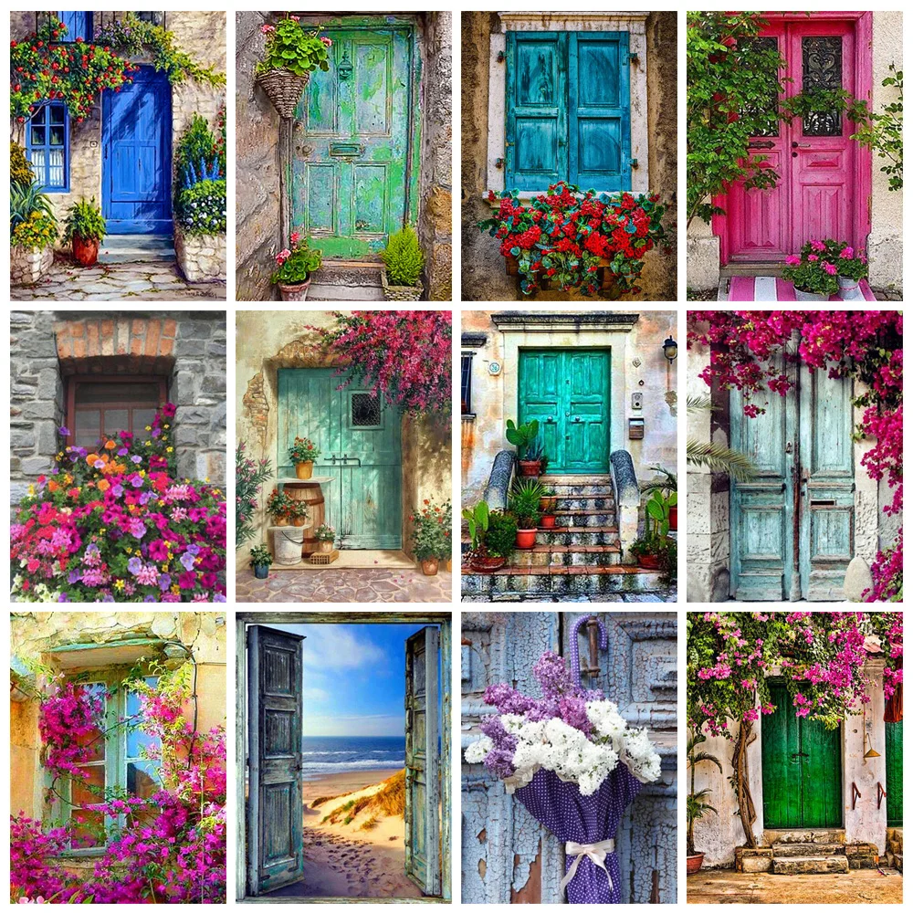 YUMEART цветы дверь ландшафты алмазная живопись вышивка крестиком С...