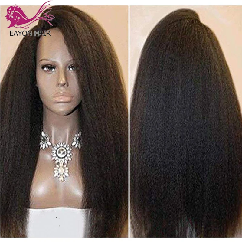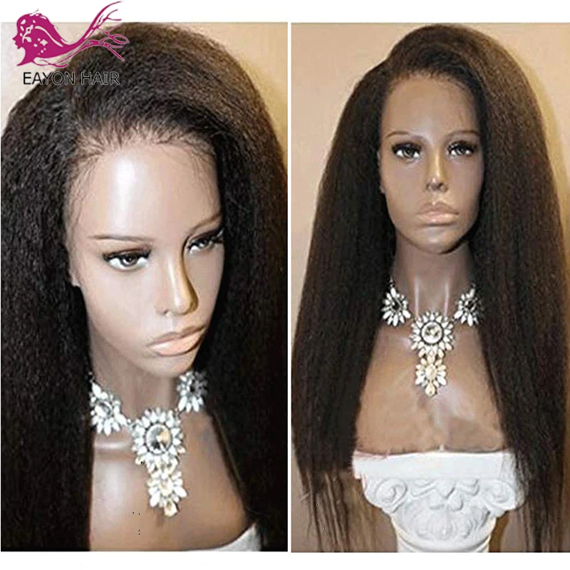 Парик EAYON Yaki, прямой, с детскими волосами, без клея, из натурал...