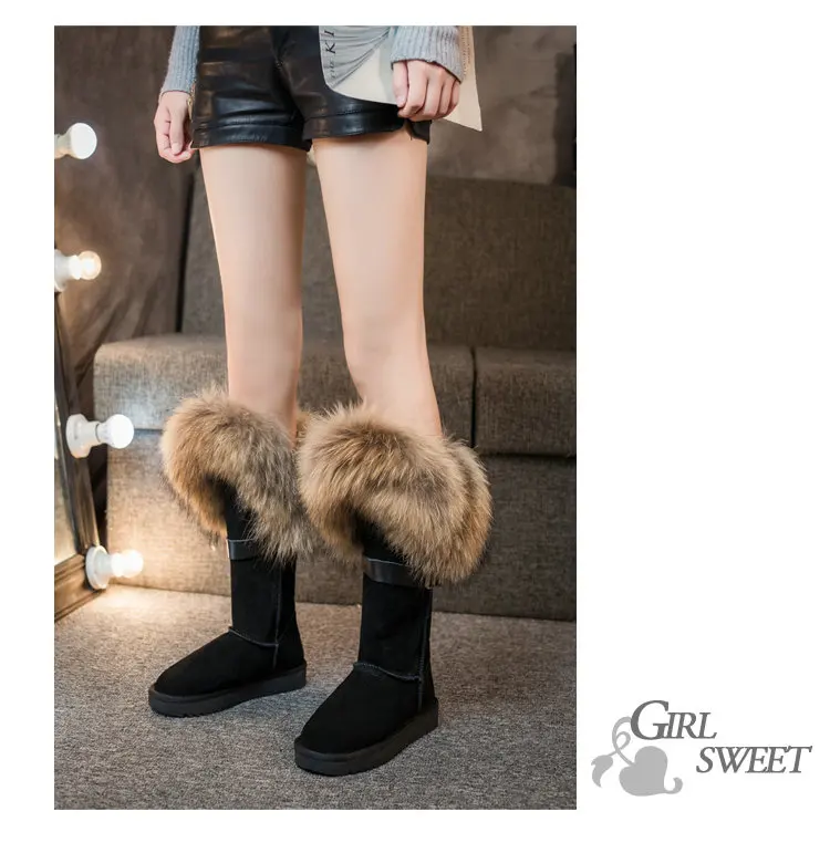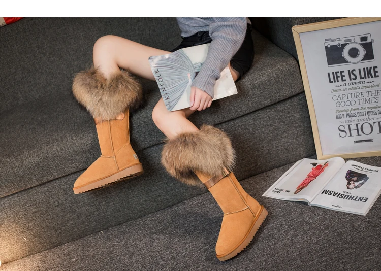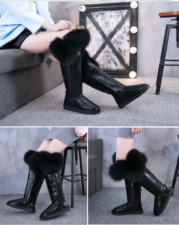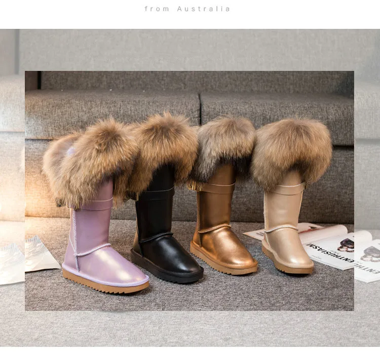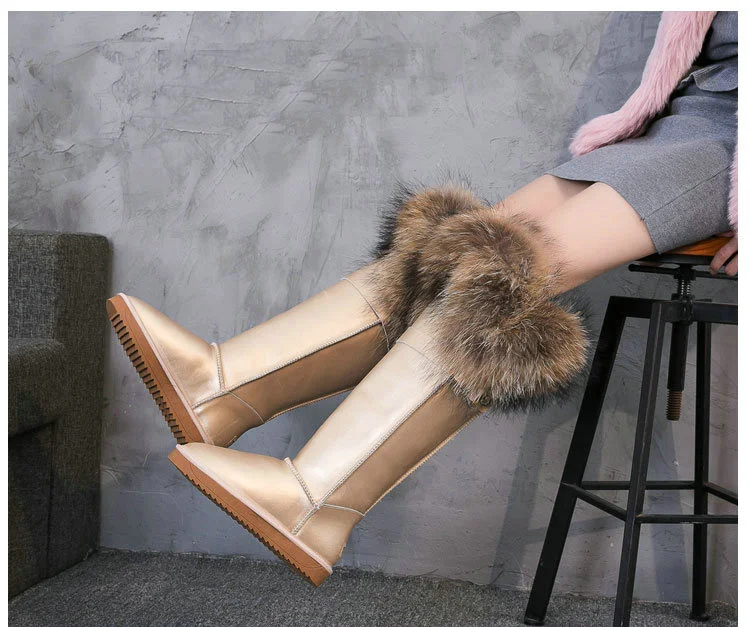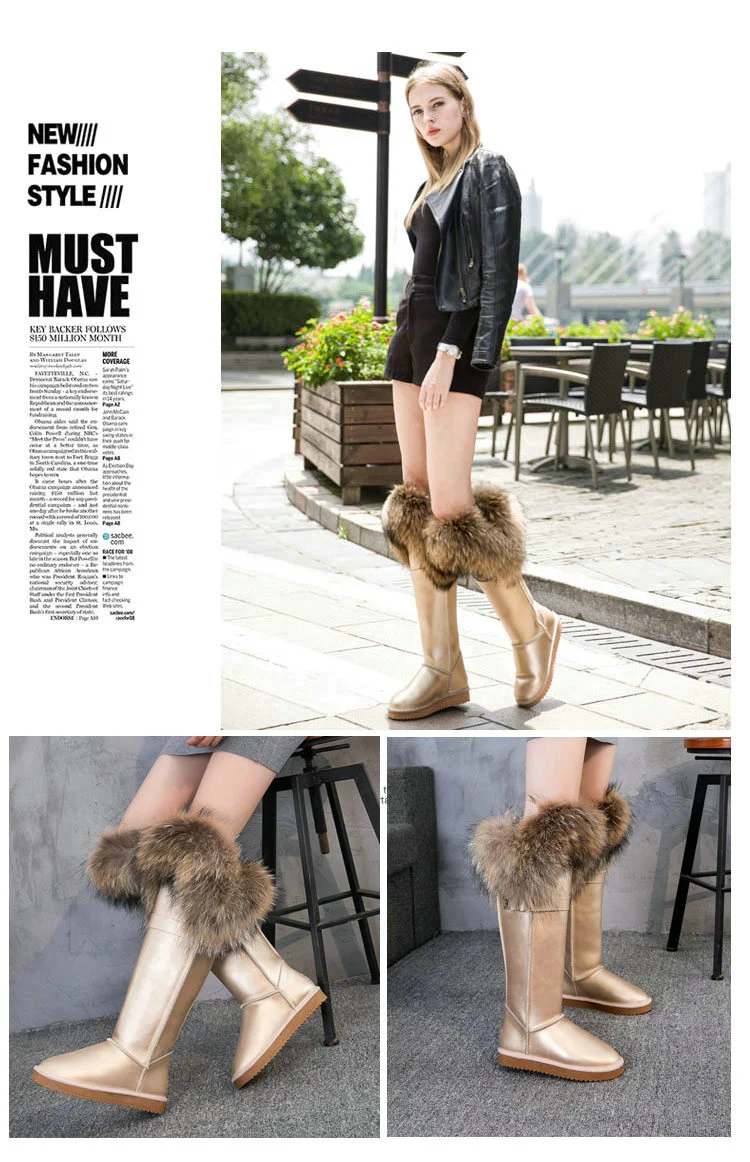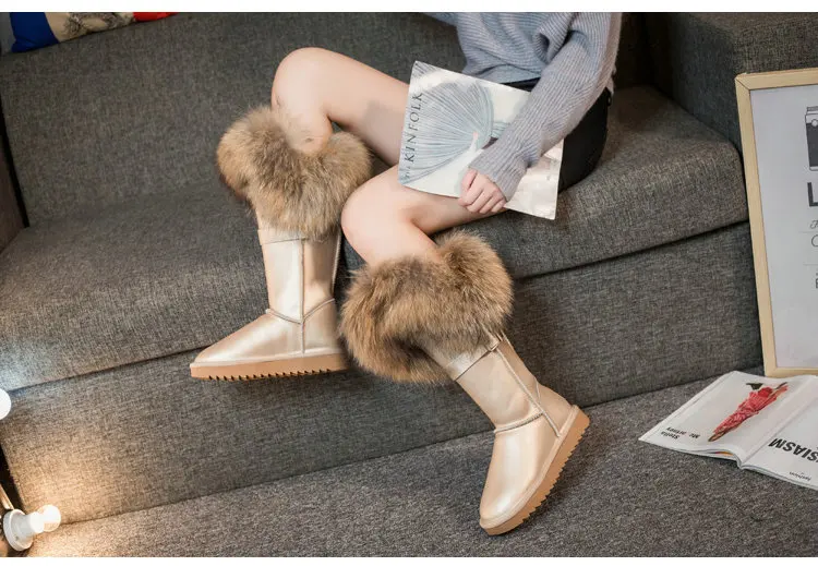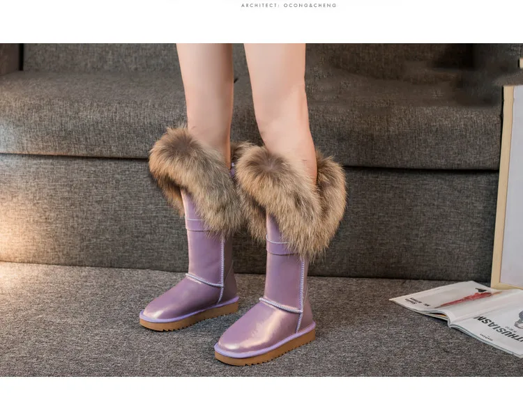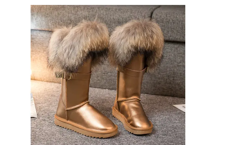 Роскошные сапоги до колена из натурального Лисьего меха женские сапоги сверхвысокие водонепроницаемые сапоги из воловьей кожи на толстой подошве для снега