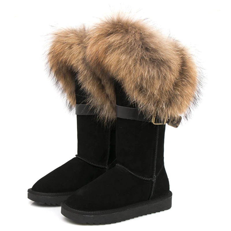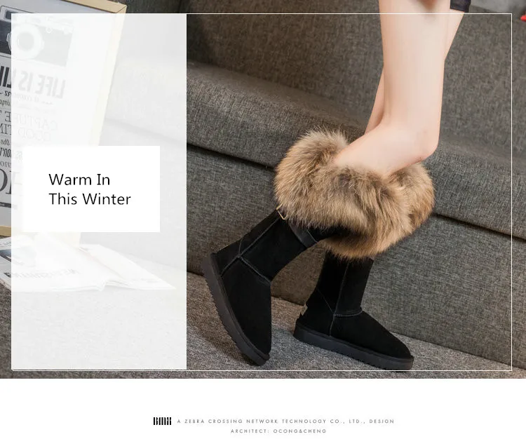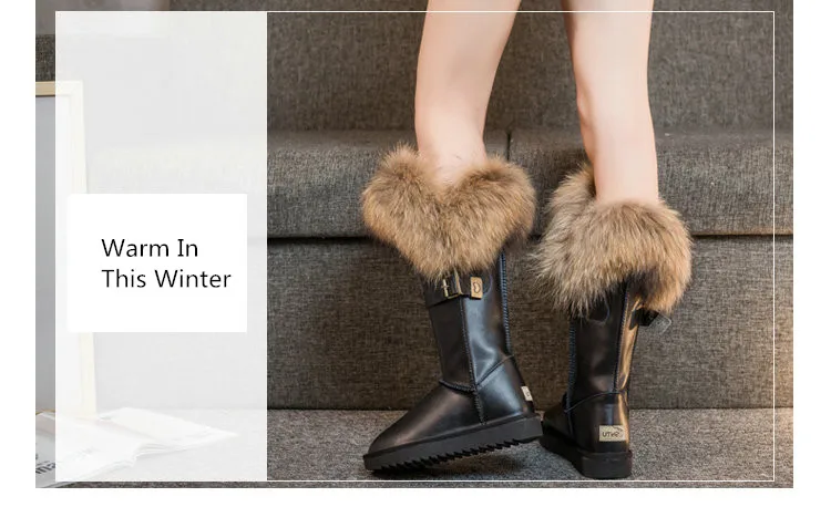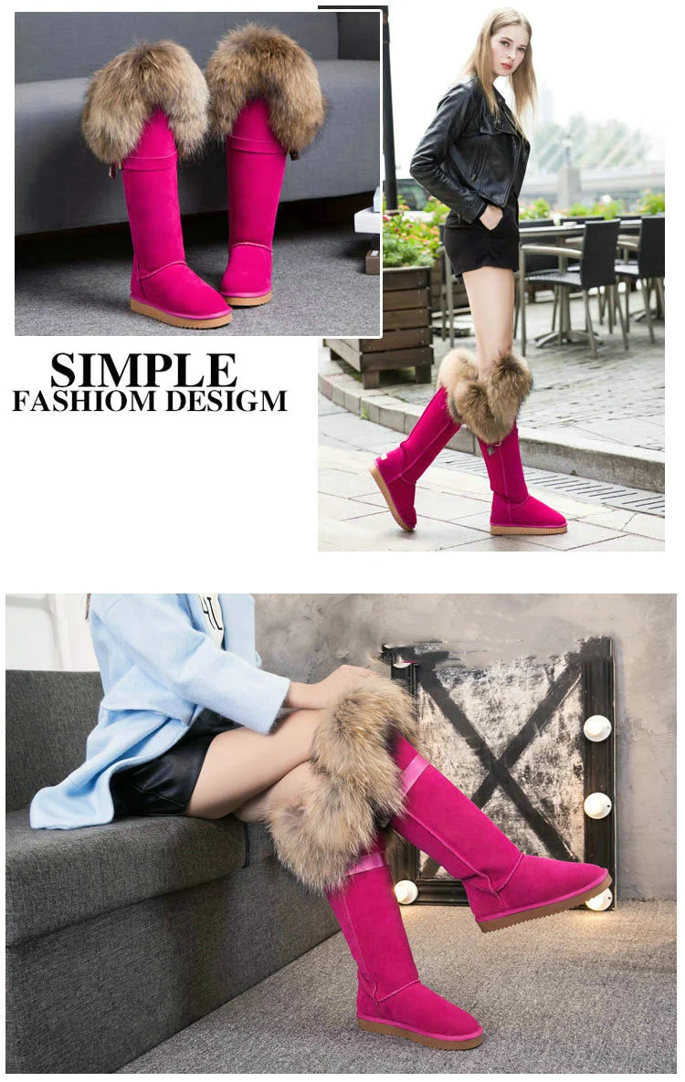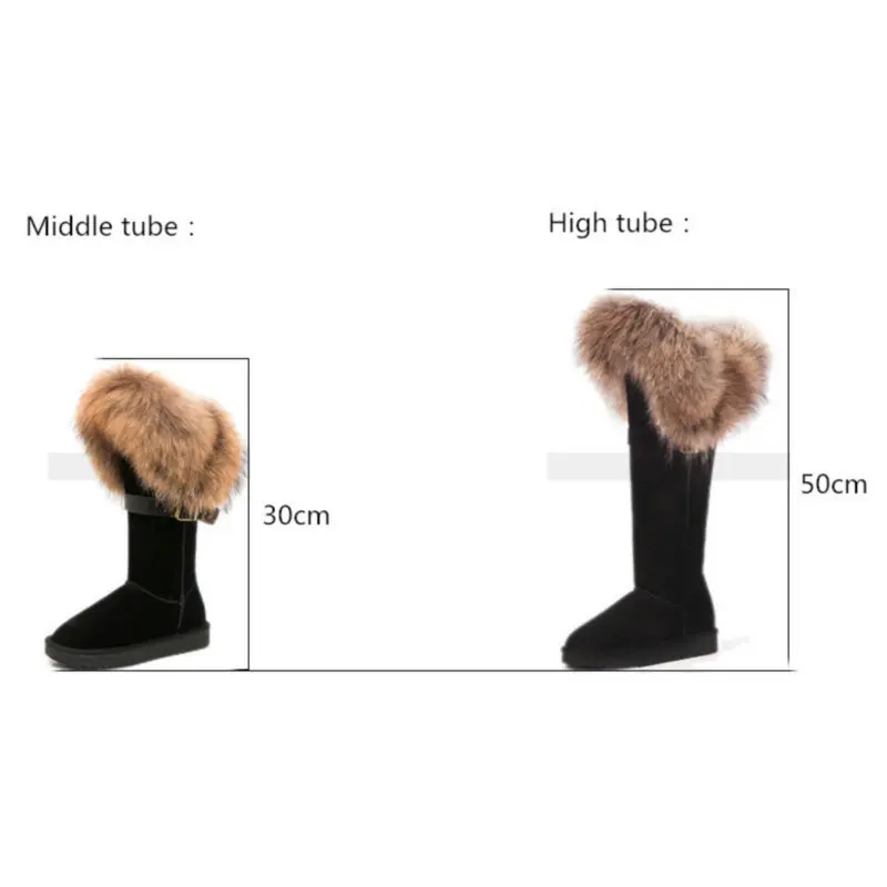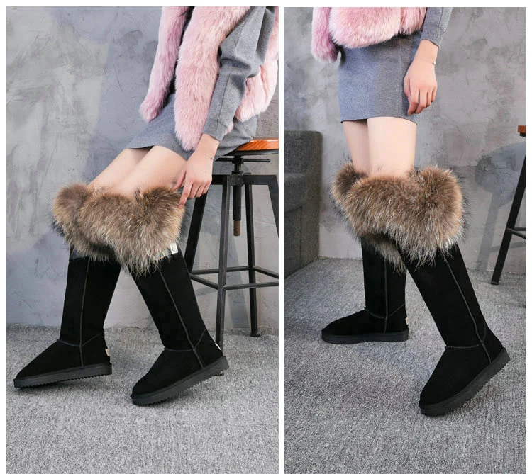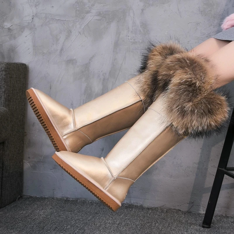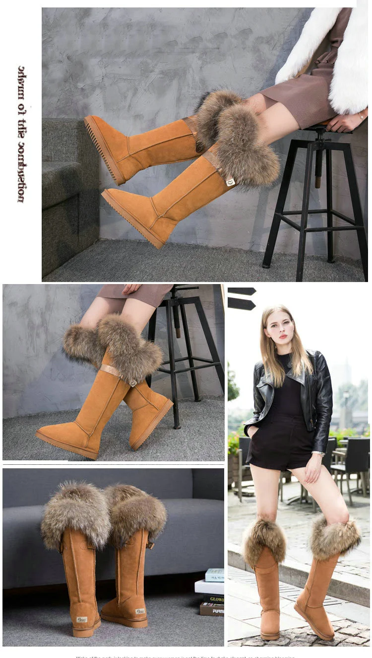 Роскошные сапоги до колена из натурального Лисьего меха женские сапоги сверхвысокие водонепроницаемые сапоги из воловьей кожи на толстой подошве для снега