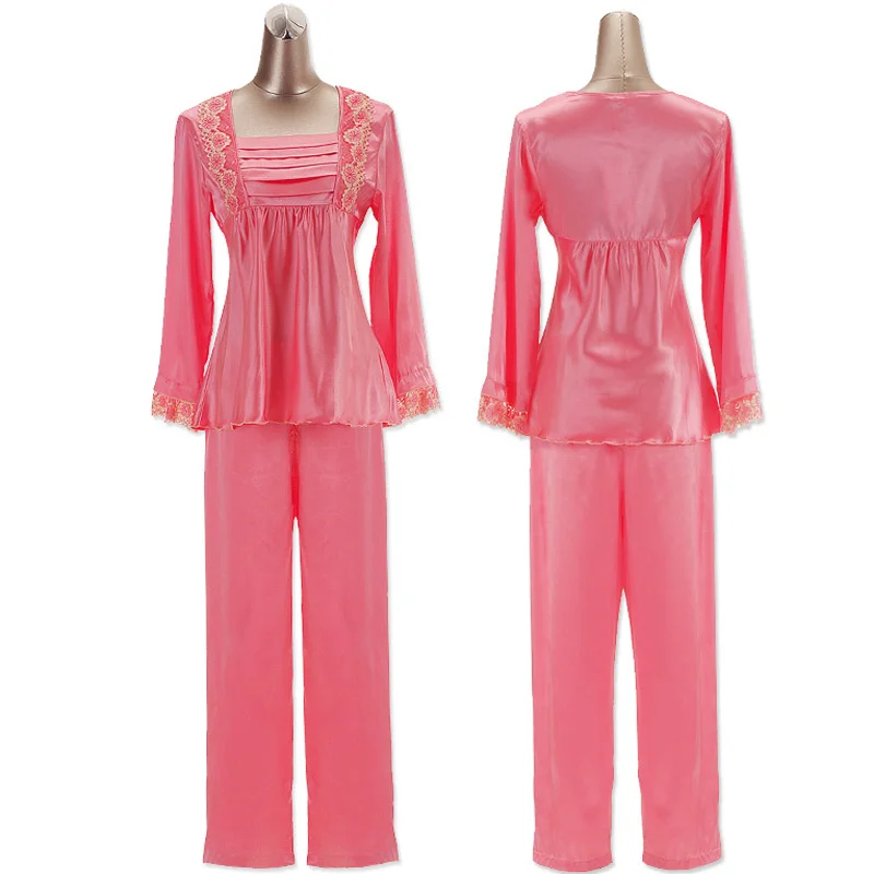 Женское, атласное, домашняя пижама одежды; Ночная одежда, комплект одежды для сна с длинным рукавом