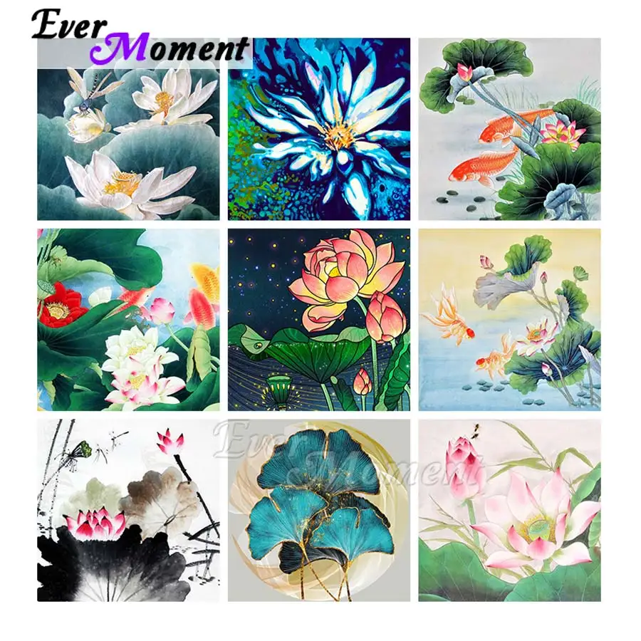 Алмазная живопись Ever Moment, квадратная картина Лотос для рукодел...