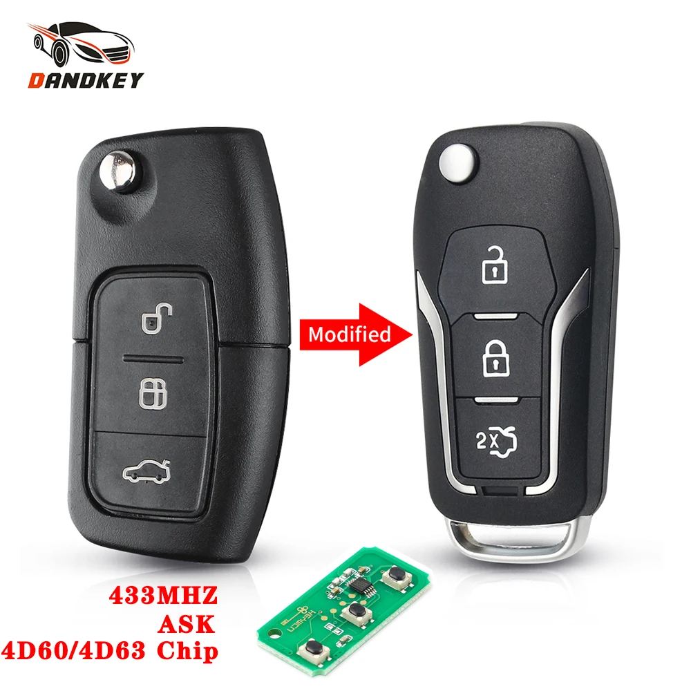Dandkey 433 МГц 4D60 4D63 чип 3 кнопки откидной модифицированный пульт дистанционного управления автомобильный ключ для Ford Focus 2 3 Mondeo Fiesta брелок HU101 чехол