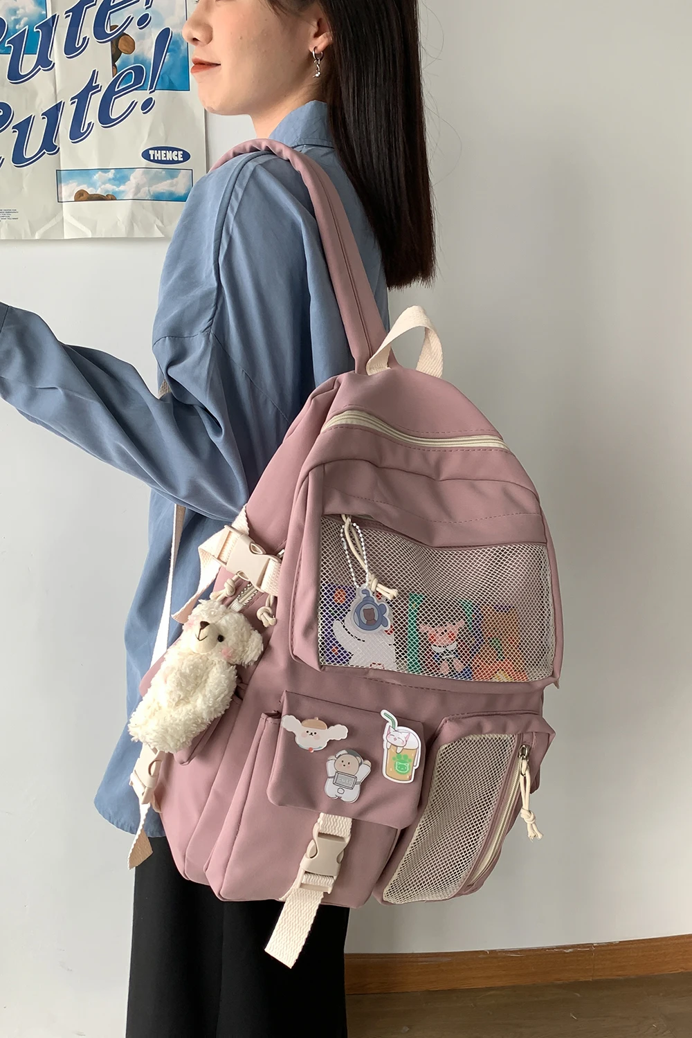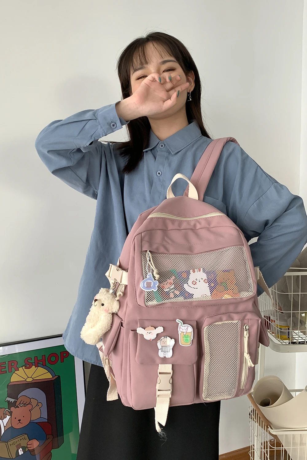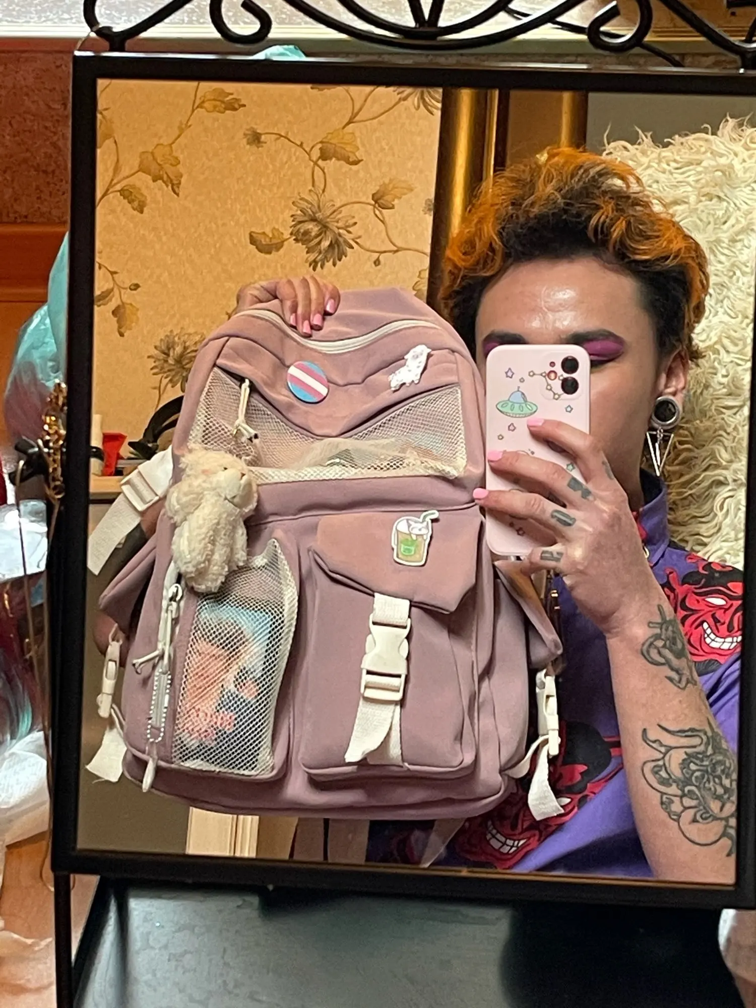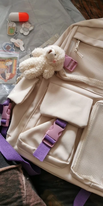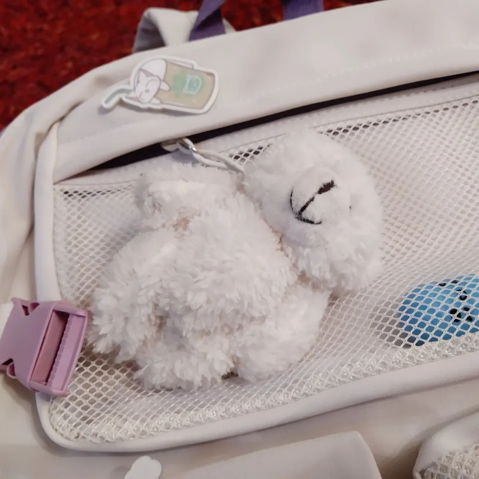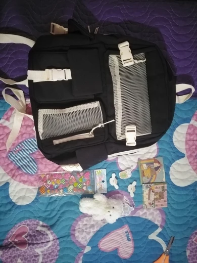 Сумка очень просторная, хорошего качества и очень милая. Он пришел очень быстро (я заказал 30 ноября) и пришел с 3 милыми значками, пластиковым брелком, плюшевым брелком, браслетом желаний и одной из этих маленьких ручек для таблеток. В целом я очень доволен и доволен своим продуктом, и в моей сумке много места, чтобы соответствовать моим школьным вещам.