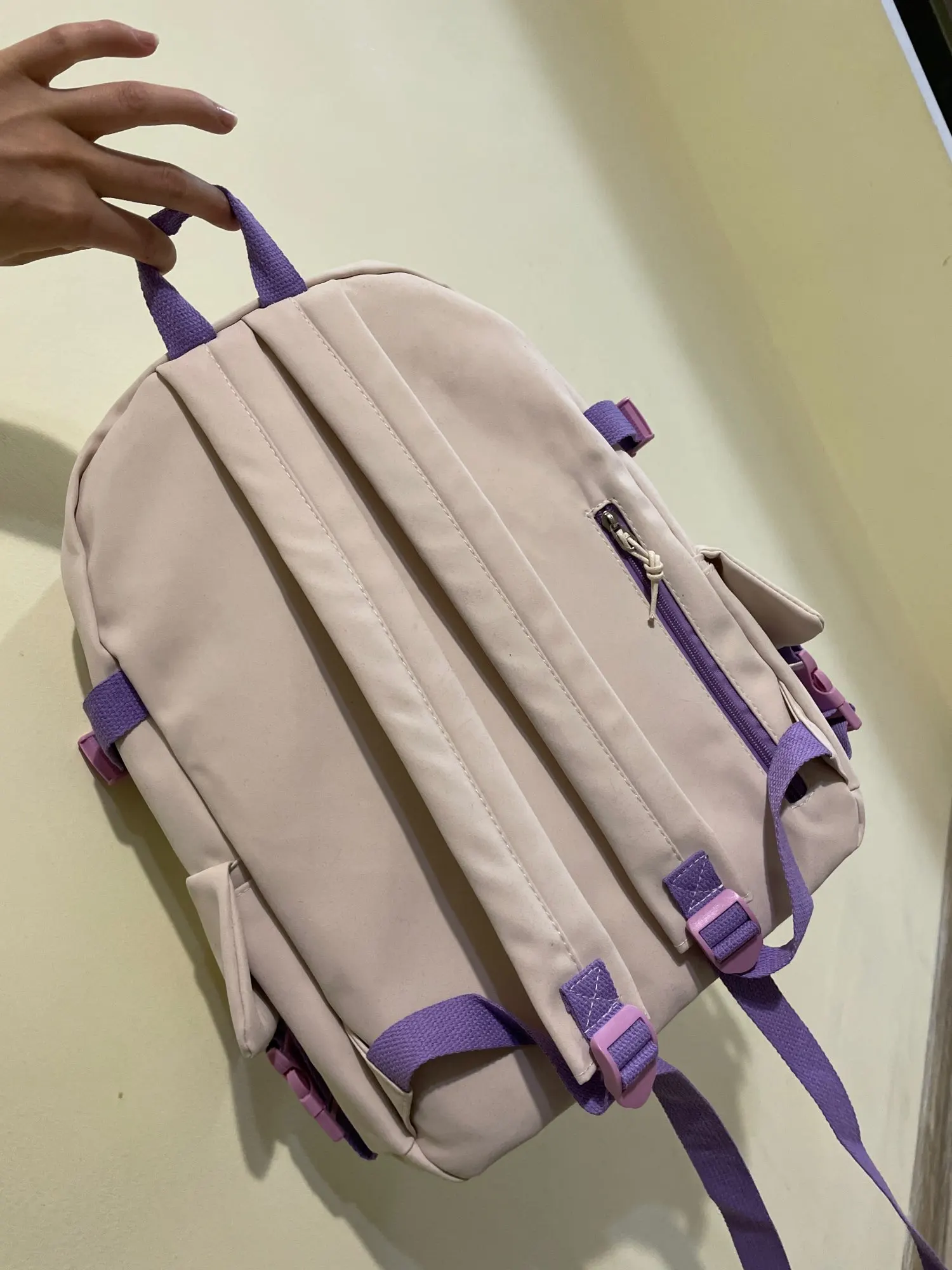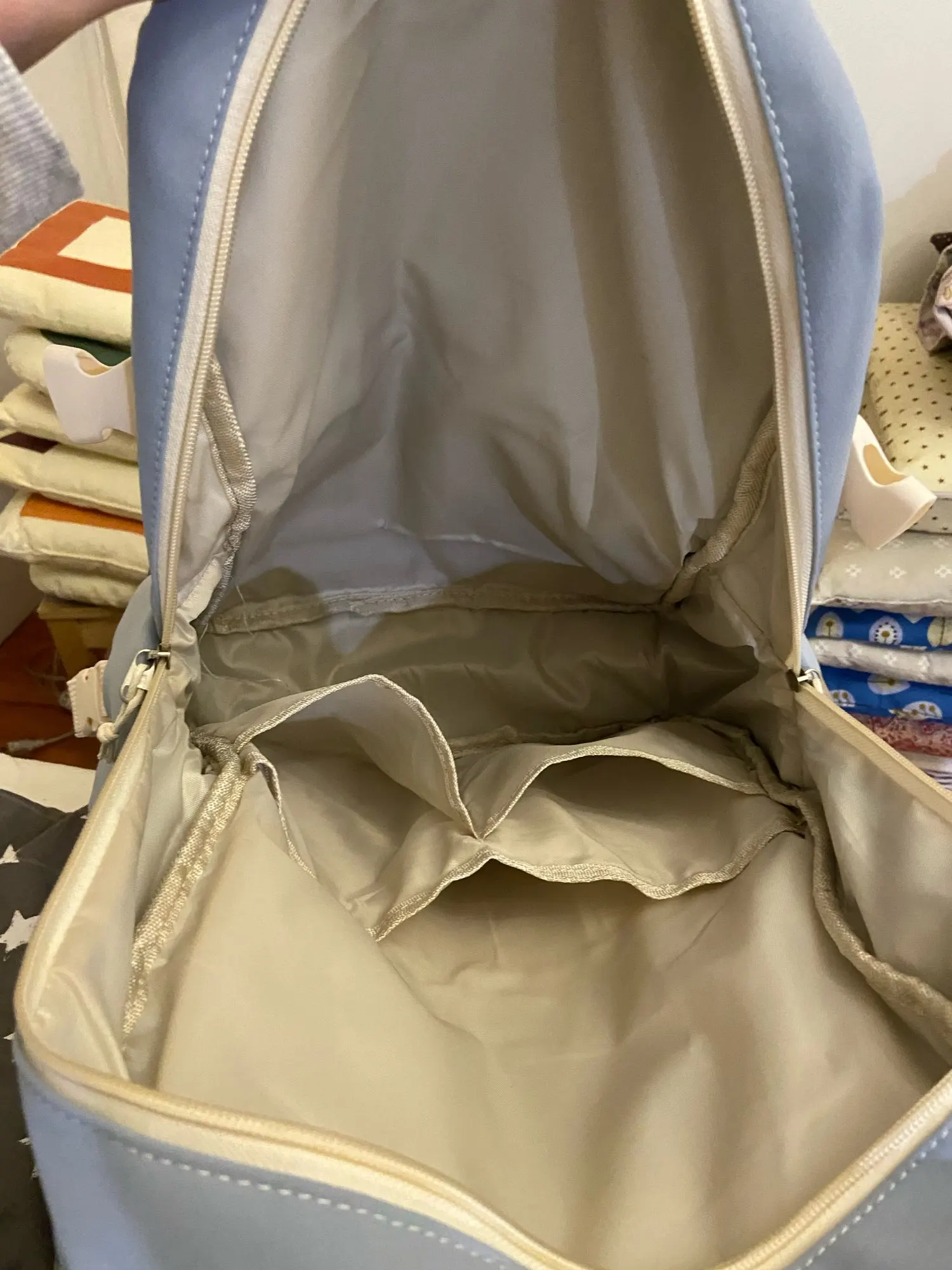 Хороший большой рюкзак. Очень вместительный. Сделан из очень приятной ткани, достаточно плотной, скорее всего он водоотталкивающий. Все, что указано в описании - пришло, выглядит супер мило и прям как на картинке. Единственное, продавец долго отправляет, но это скорее всего связано с китайским Новым годом.