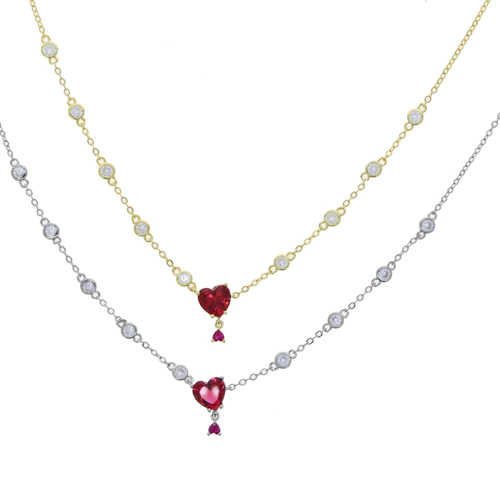 2021 оптовая продажа, новое модное ожерелье с кулоном в виде нежного красного сердца с прозрачным кубическим цирконием для милых женщин и девушек, модные ювелирные изделия на День святого Валентина