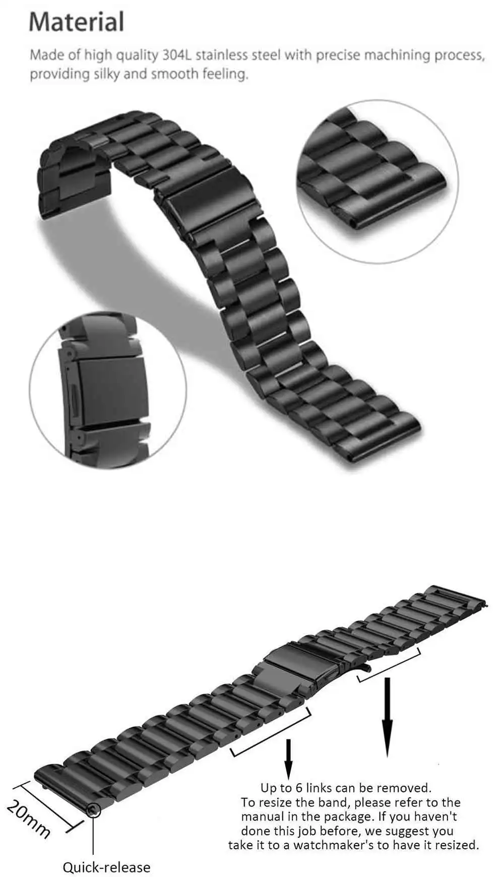 Ремешок из нержавеющей стали для часов Huawei GT 2E GT2 2 46 мм/GT смарт-ремешок для часов Xiaomi Huami Amazfit Bip GTR GTS часы браслетХарактеристика:100% новый и высокое качествоЭлегантный металлический ремешок из нержавеющей сталиВысококачественная нержавеющая сталь 316L, полированная несколькими шагами и окрашенная вакуумным покрытием.Классическая версия для Fitbit Versa и приятная на ощупь на запястьеСледовательно, он более ноский и коррозионно-стойкий, и никогда не будет ржавым.Изысканная двойная складная застежка, легко надевается/снимается, безопасная и моднаяПремиум металл из нержавеющей стали имеет роскошь, благородство, элегантность и долговечностьЦвет: серебристый, черный, золотой, розовое золотоСвободный размер: свободно Отрегулируйте длину.Спецификация:20 мм Универсальный:Для Garmin Vivoactive3/ Vivomove HR / Vivomove / Vivoactive 3 Music /Forerunner645Для Samsung Gear Sport / S2 Classic / Galaxy Watch 42 ммДля Moto360 2 42 ммДля Pebble Time Round / Pebble 2Для Xiaomi Huami Amazfit Bip YouthДля Xiaomi Huami Amazfit GTSДля Xiaomi Huami Amazfit GTR 42 ммДля LG Watch SportДля Ticwatch 2 / Ticwatch EДля Misfit VaporДля Huawei Watch2 / Watch2 ProДля Nokia Withings Steel HR Male / Nokia stel HR Male / Withing stel Male22 мм Универсальный:Для Samsung galaxy watch 46 мм/gear S3/ Gear2 R380/ Gear2 Neo R381/ Live R382Для Huami Amazfit Pace/ Huami Amazfit stratos / Amazfit 2 StratosДля Xiaomi Huami Amazfit Bip GTR 47 ммДля Pebble Time/ Pebble 1Для Asus Vivowatch / Asus Zenwatc / Asus Zenwatch2Для LG W100/LG W110/LG W150Для Ticwatch ProДля ZTE QuartzДля Huawei Watch GT & 2 46 ммДля Honor Watch MagicДля исследования Fossil Gen 4 Q HR / Fossil Gen 3 QПосылка:1 ремешок для часов из нержавеющей стали (часы в комплект не входят)