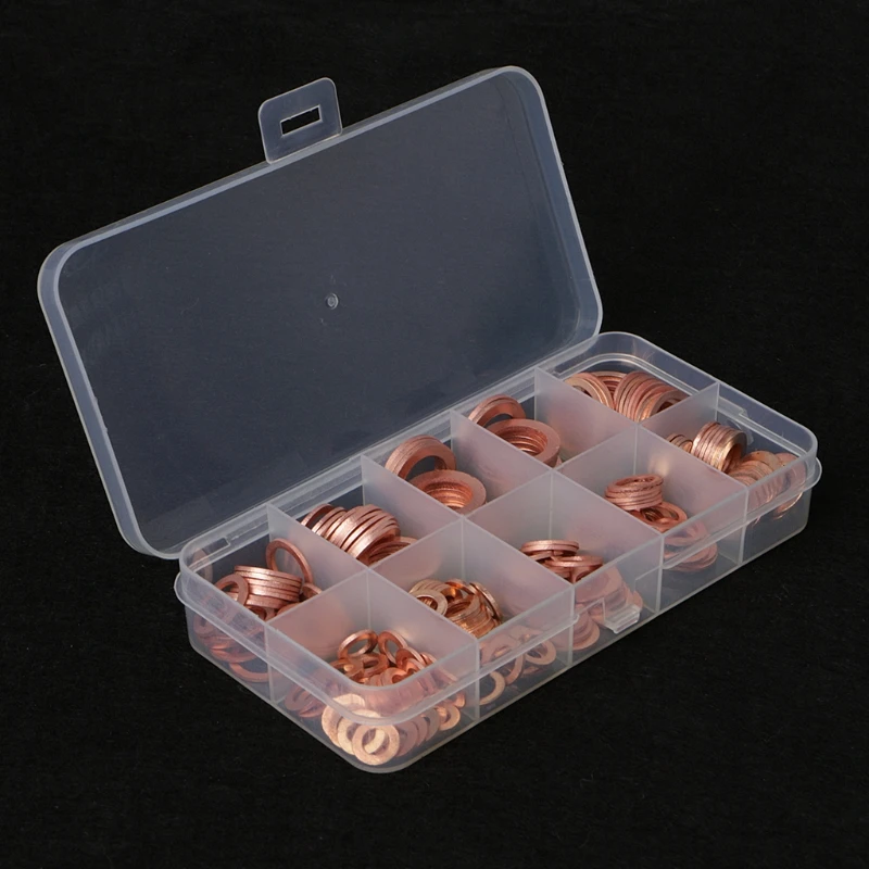 200 шт., медные шайбы, набор прокладок, 9 размеров, комплект плоских колец с пластиковой коробкой, Прямая поставка icon star icon star icon star icon star icon star