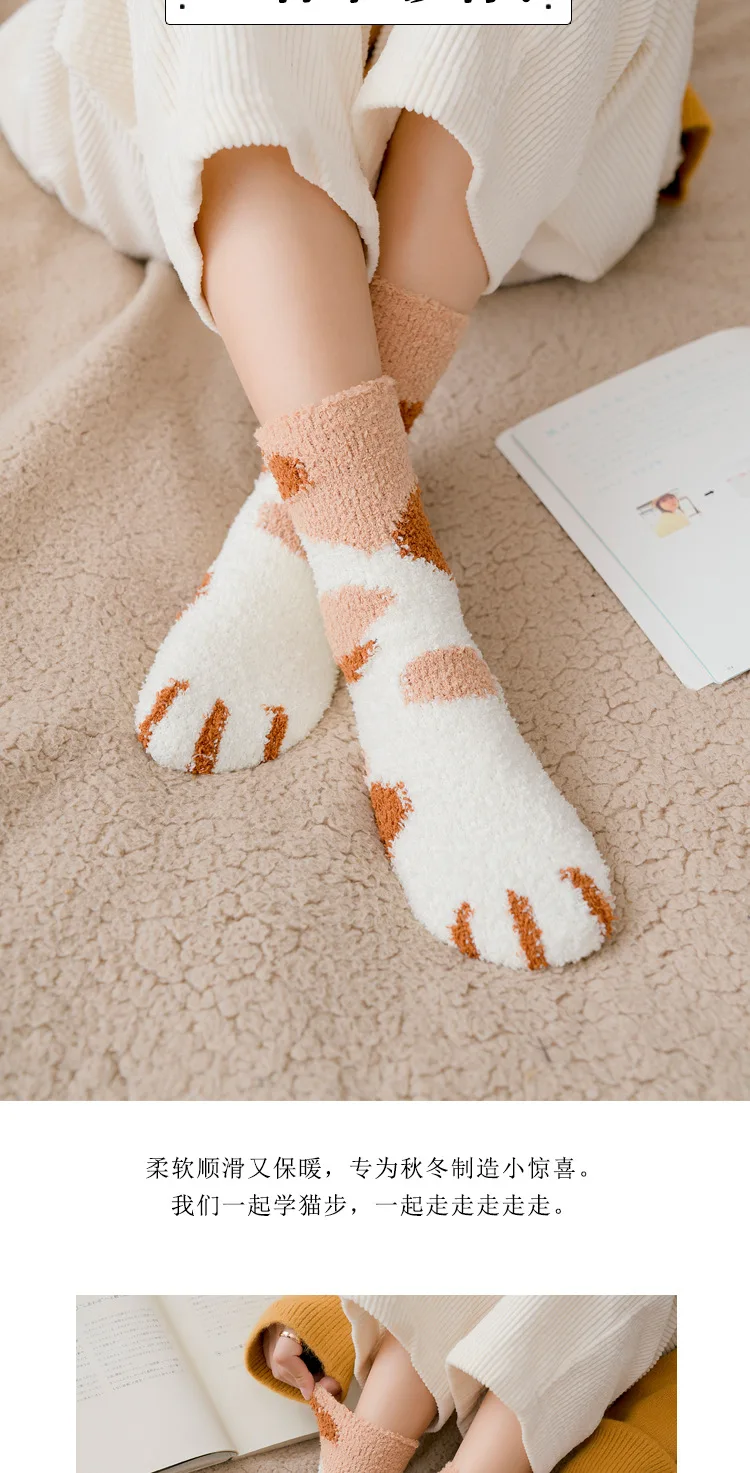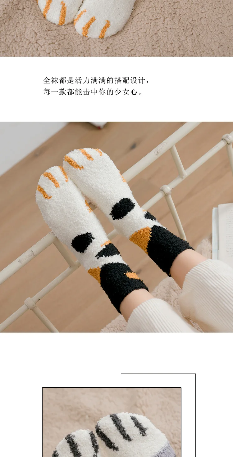 Модные плюшевые носки из кораллового флиса, женские носки-трубы, осень и зима, милые толстые теплые носки с кошачьими когтями для сна, махровые носки