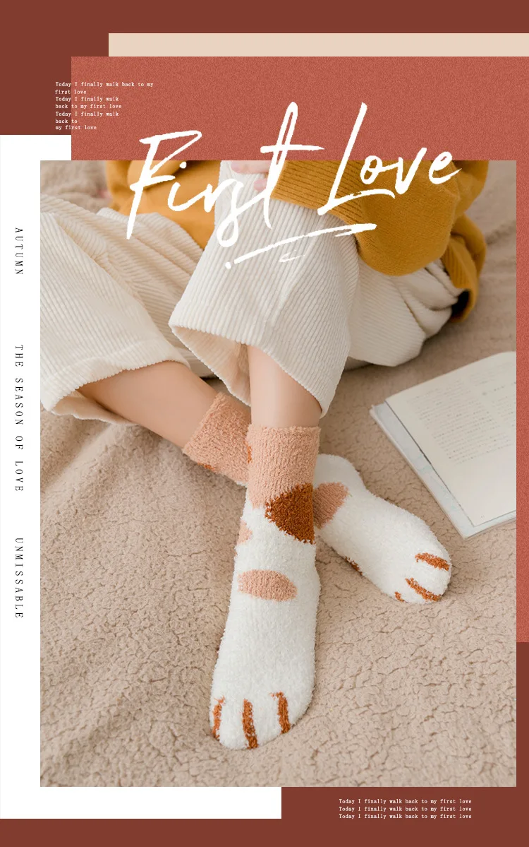 Носки женские осенне-зимние, теплые, плюшевые, кошачьи лапки