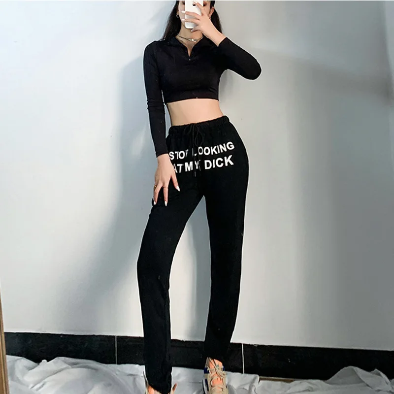 Лето 2020 джоггеры женские брюки с надписью перестать смотреть на мой член спортивные брюки хип-хоп черные брюки с высокой талией для бега женские брюки