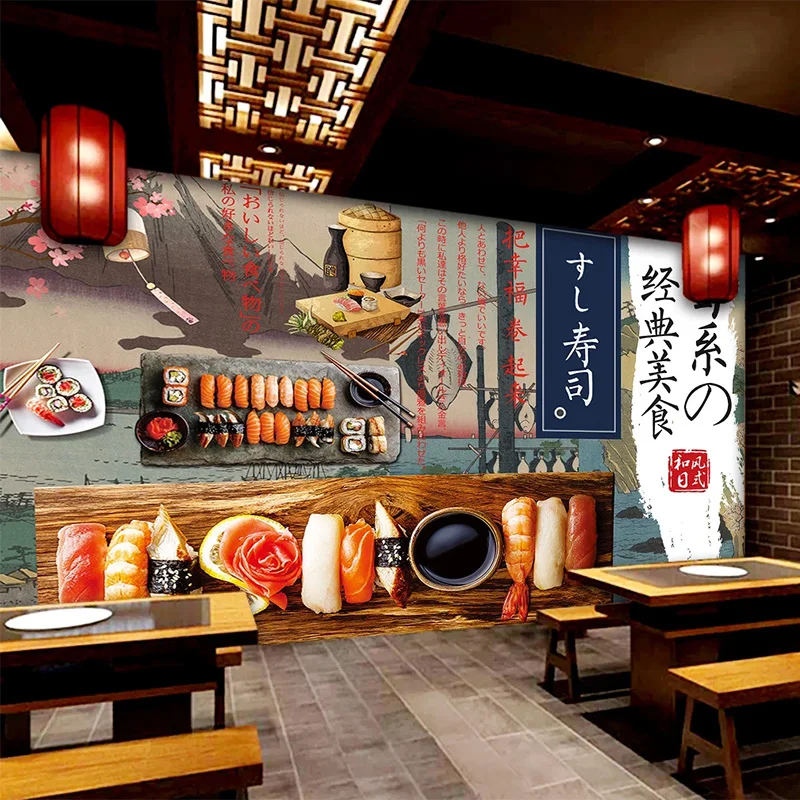 Самоклеящиеся водонепроницаемые Настенные обои на заказ, 3D обои в японском стиле, фоны для суши, ресторана, декоративные обои