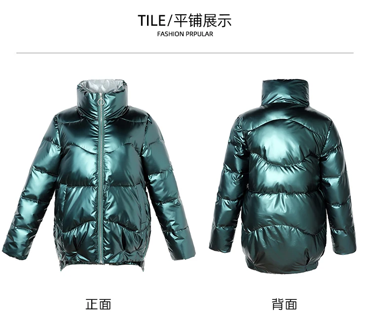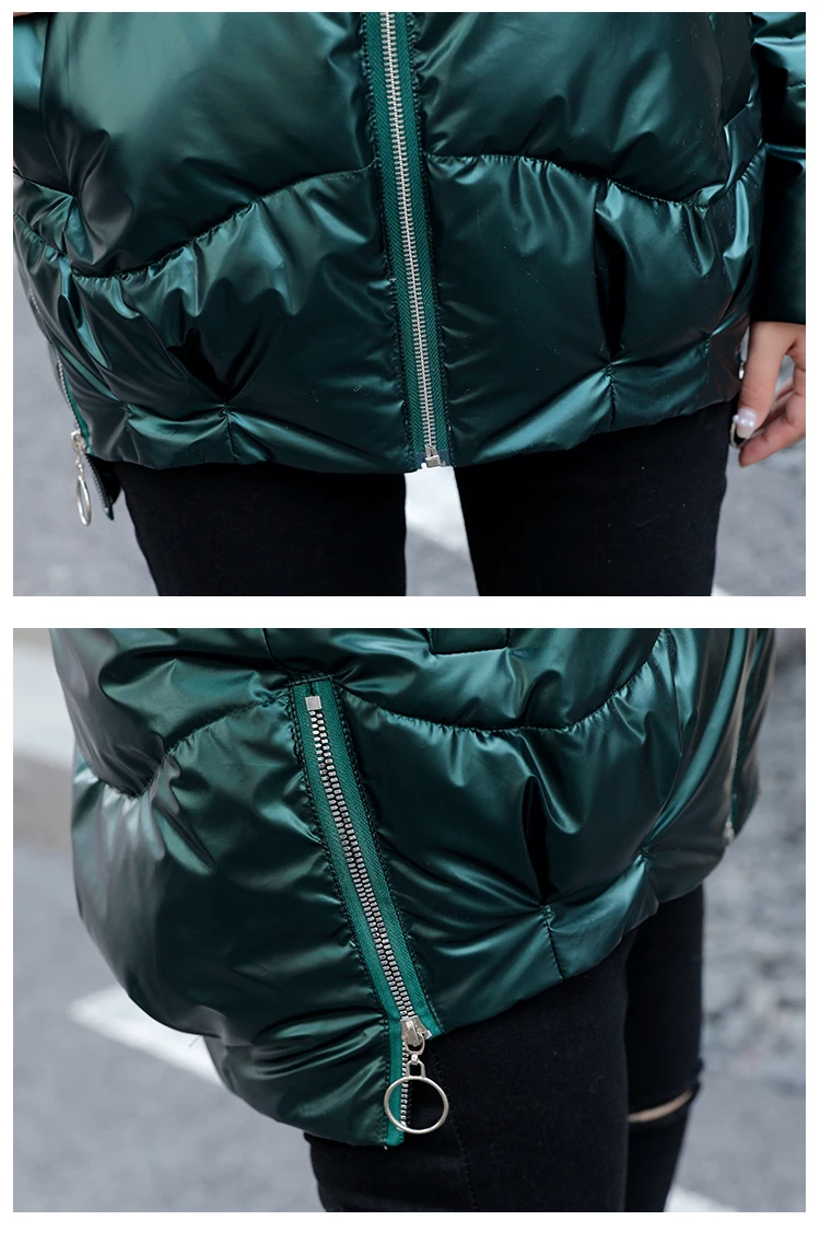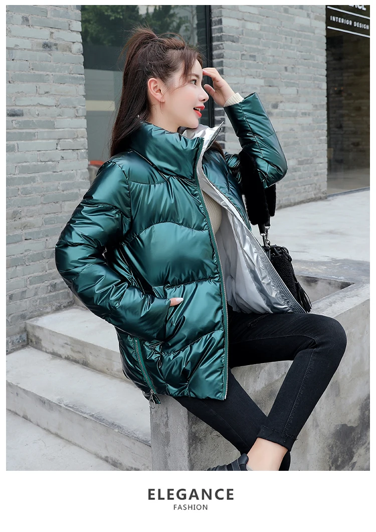 Женский короткий пуховик, зимняя Блестящая Серебристаячернаязеленая...