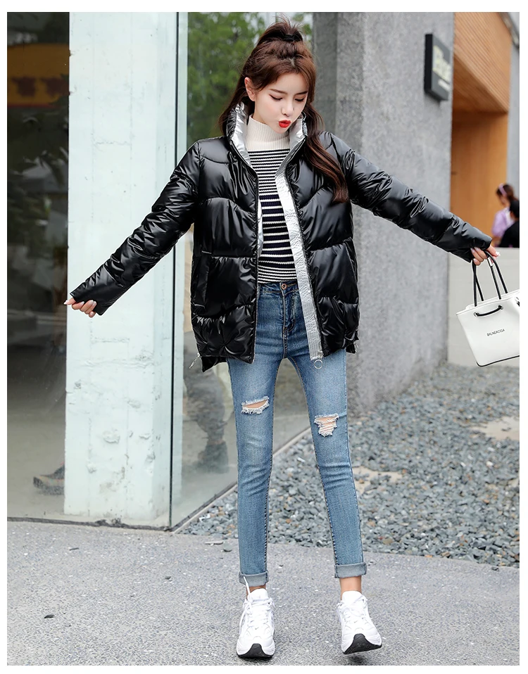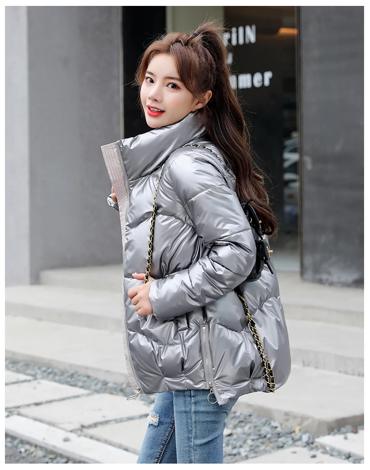 Новинка, зимняя куртка Han edition, блестящая, с хлопковой подкладкой, с воротником, маленькая, с хлопковой подкладкой