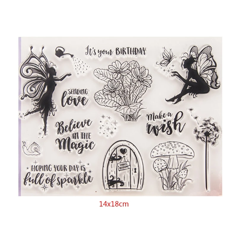 Прозрачный силиконовый штамп со словами Феи девушки в виде гриба дл...