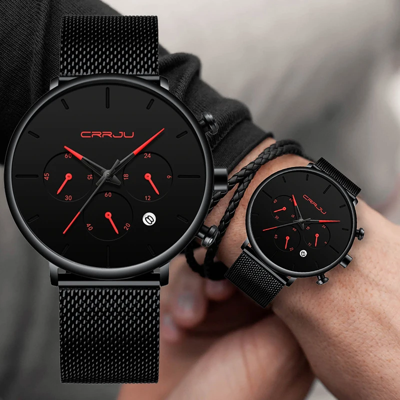 CRRJU мужские деловые часы Роскошные повседневные водонепроницаемые спортивные часы мужские кварцевые сетчатые часы из нержавеющей стали Relogio Masculino