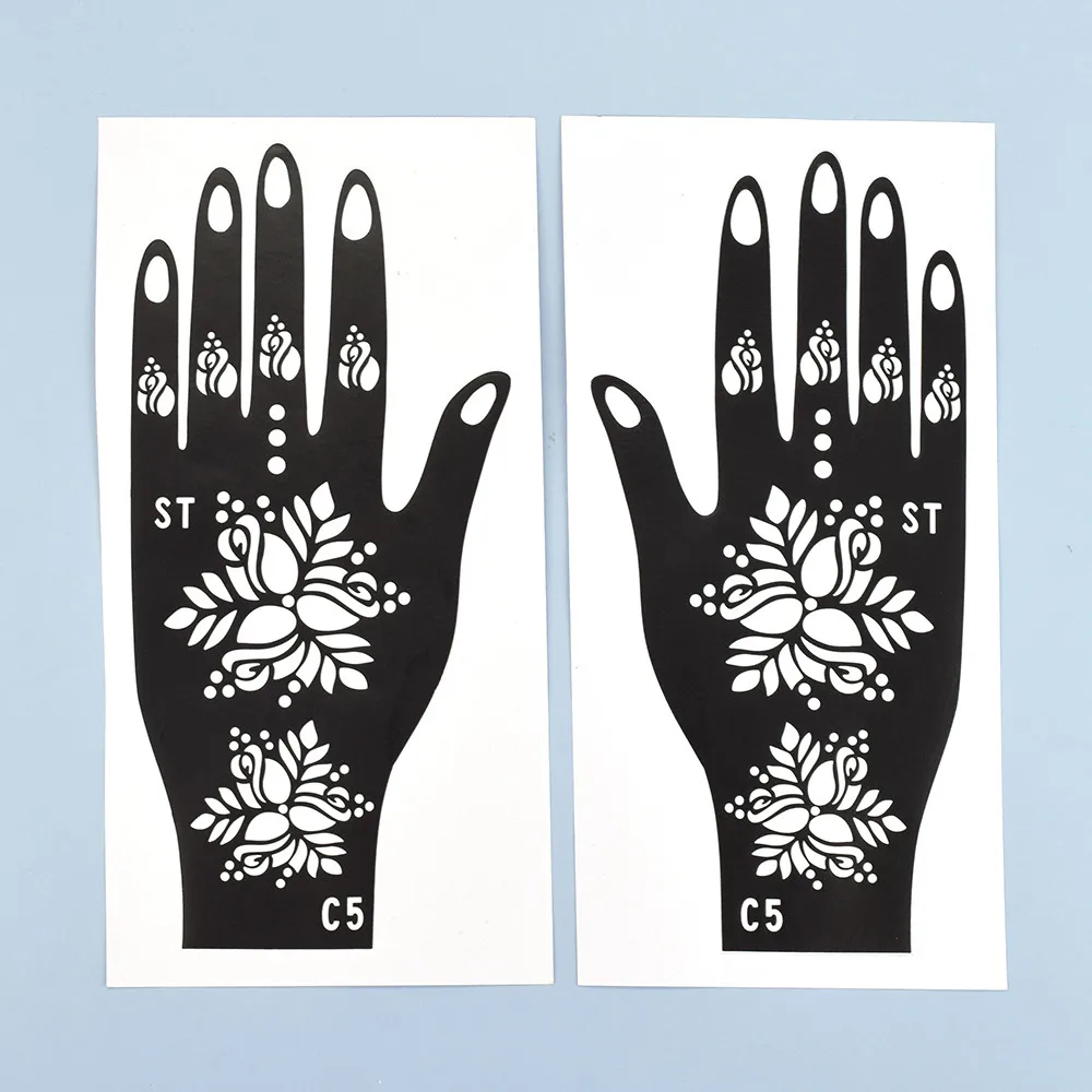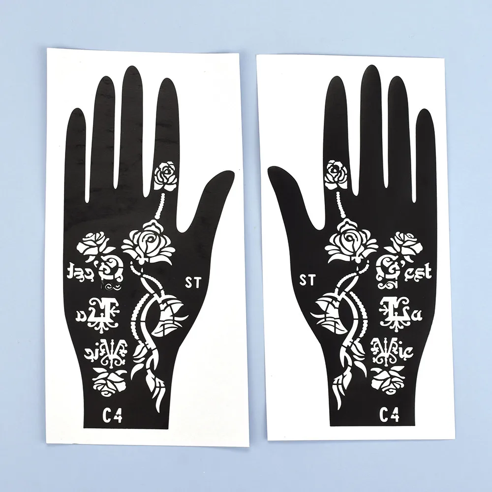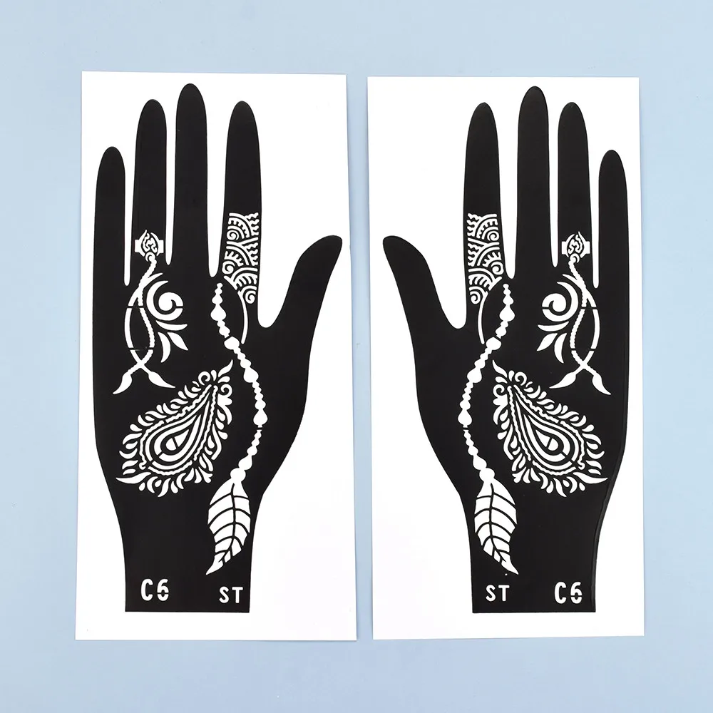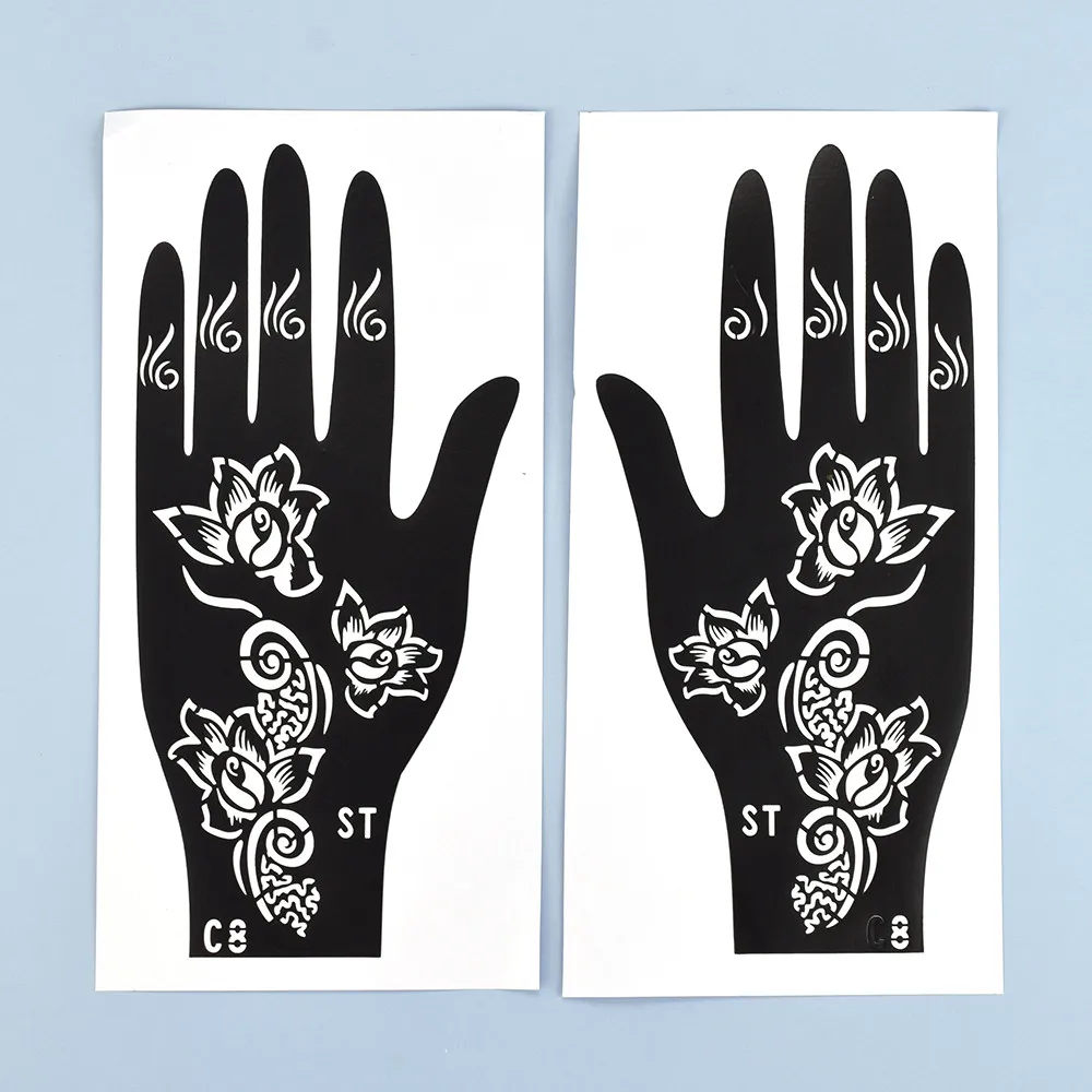 2 шт.компл. трафарет для татуировки хной, временная татуировка на руку, боди-арт, наклейка, полый шаблон для рисования, инструменты для свадьбы, индийский цветок, трафарет татуировки
