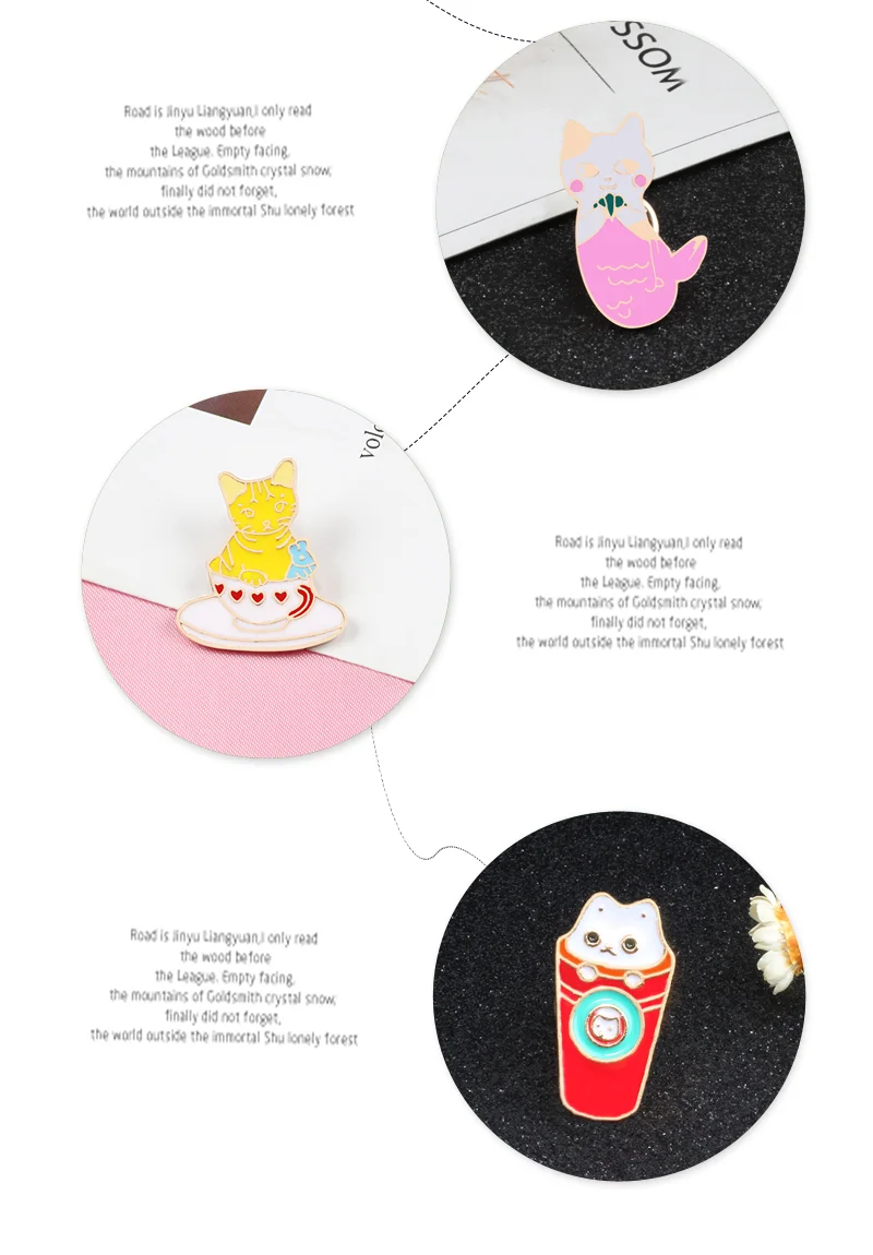 Эмалированные булавки с милым котом, мини-бокс для чашек, брошь котенок, сумок, курток, лацканов, булавки, Мультяшные милые животные, значок, ювелирные изделия, подарки для женщин и девушек