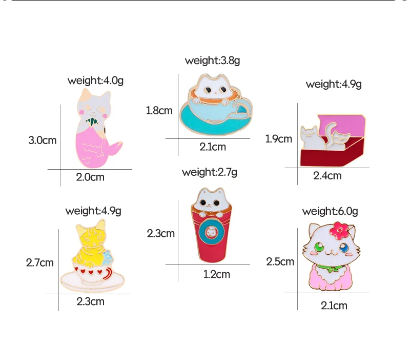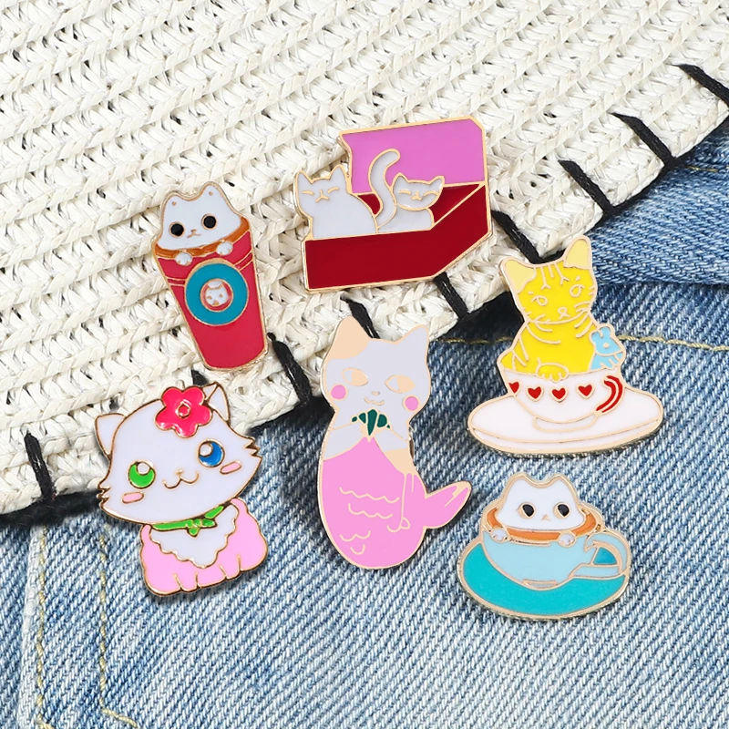 Милые эмалированные булавки для кошек, мини-чашка, коробка, брошь котенок, сумка, куртки, отворот, булавка, мультфильм, милые животные, значок, ювелирные изделия, подарки для женщин и девушек