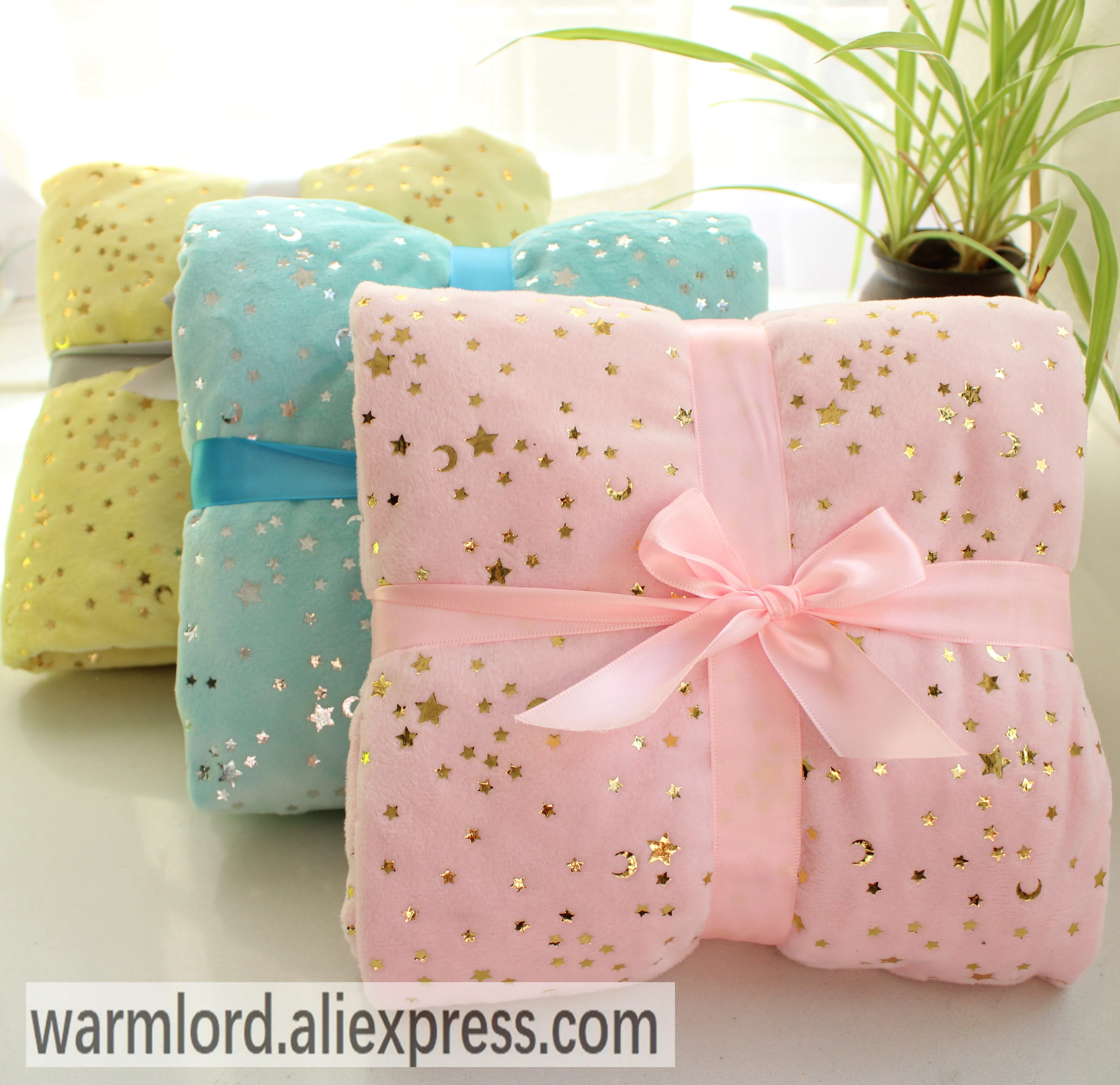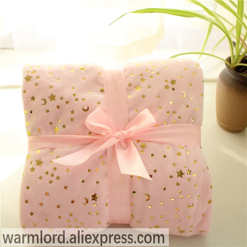 2-слойное детское одеяло из кораллового флиса в молочный горошек, Детский ковер с золотыми звездами, сверкающее одеяло для малышей, детское одеяло