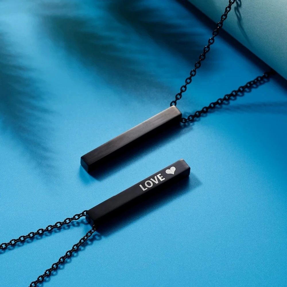 Rinhoo гравировка квадратный бар пользовательское имя ожерелье подвеска на шею из нержавеющей стали для мужчин и женщин на день рождения, ювелирное изделие, подарок