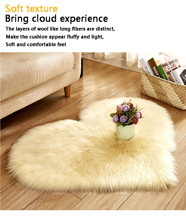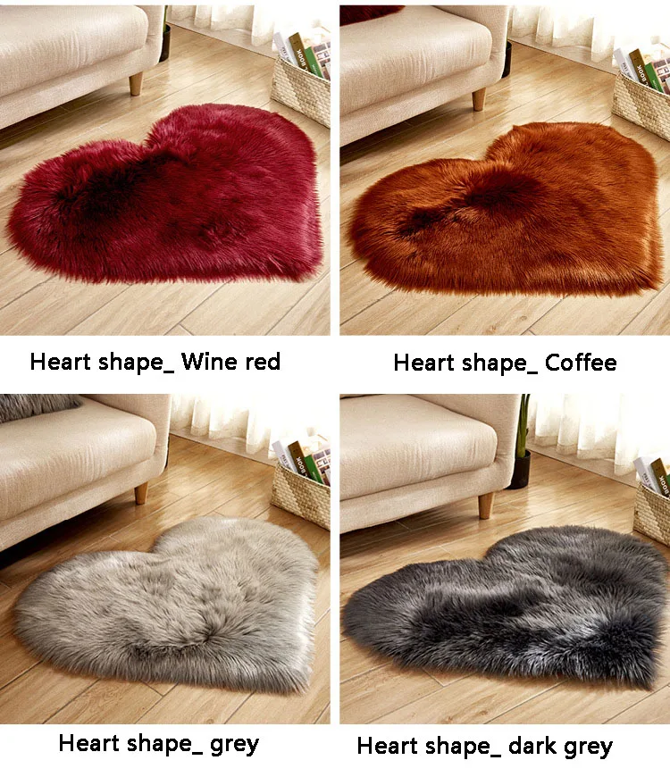Название: ковер в форме сердца Рисунок: однотонный Форма: форма сердца Особенности: плюш длиной 5-6 см, теплый и дышащий, удобный и мягкий Подходящая сцена: спальня, гостиная, балкон и т. д.