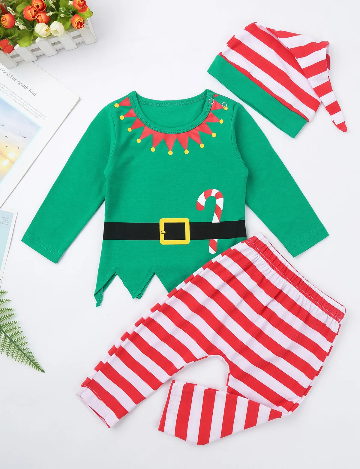 Комплекты для малышей и детей постарше рождественские эльфийский наряд Осенние Топы с длинными рукавами со штанами шапка Одежда для маленьких мальчиков и девочек возрастом от фестиваля карнавальный костюм; Спортивный костюм