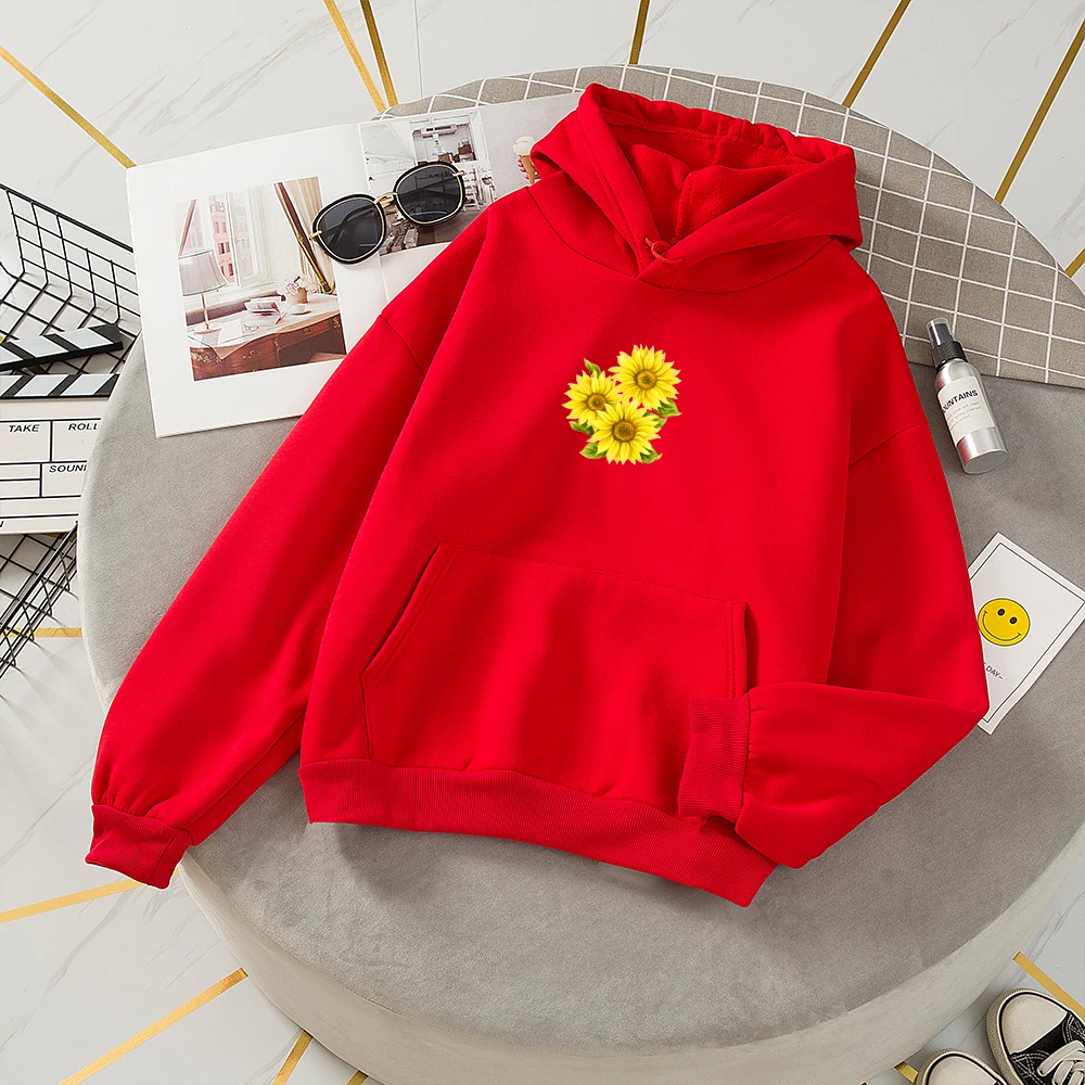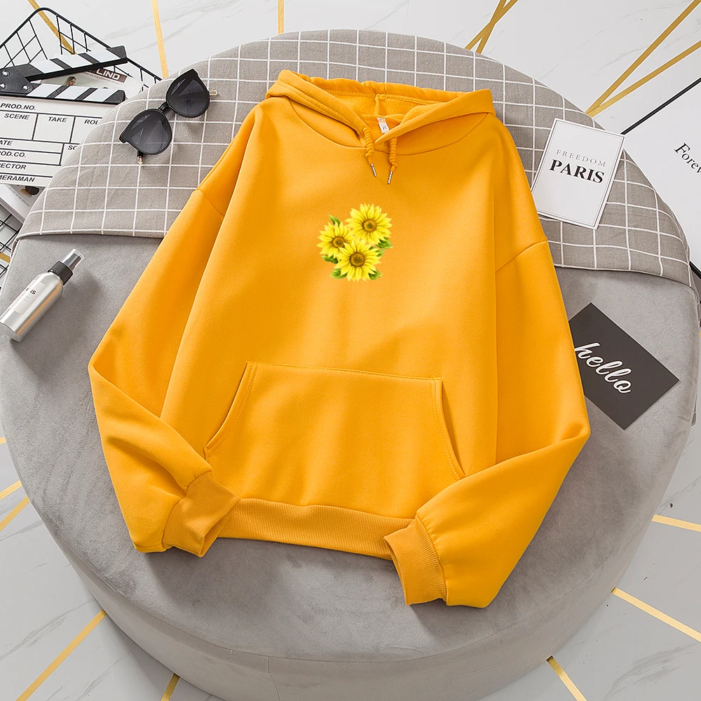 Толстовка с подсолнухами в стиле Харадзюку, свитшоты оверсайз для женщин, пуловер, женский желтый теплый пуловер, толстовка с кулиской для лучшего друга