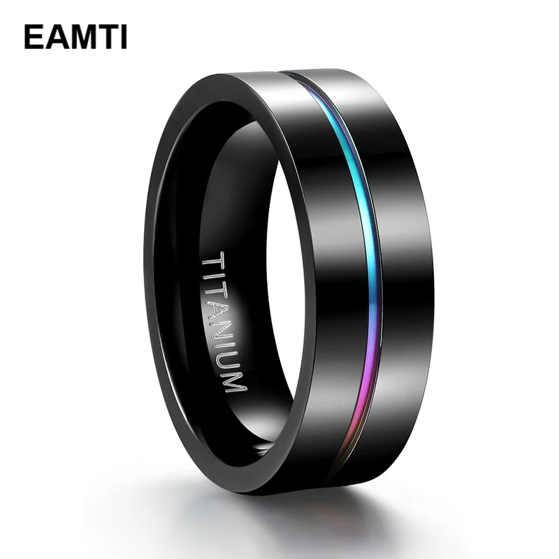 Eamti 7 мм кольцо для мужчин черный титан мужские обручальные кольца Радуга Кольцо мужские модные украшения Bague Homme Anels