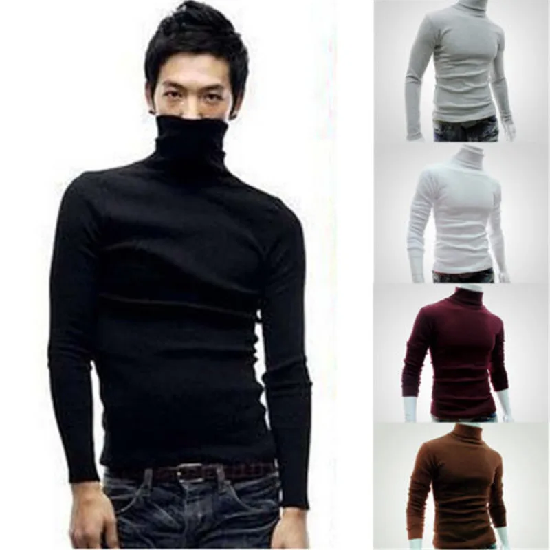 Мужской пуловер с высоким воротом, повседневный облегающий джемпер ...