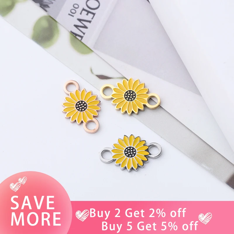 Fnixtar 20 шт. 19*12 мм с изображением подсолнуха разъем зеркальные шармы лак Нержавеющаясталь Чарующее ювелирное "сделай сам" для изготовления Цепочки и ожерелья оплетка Браслеты