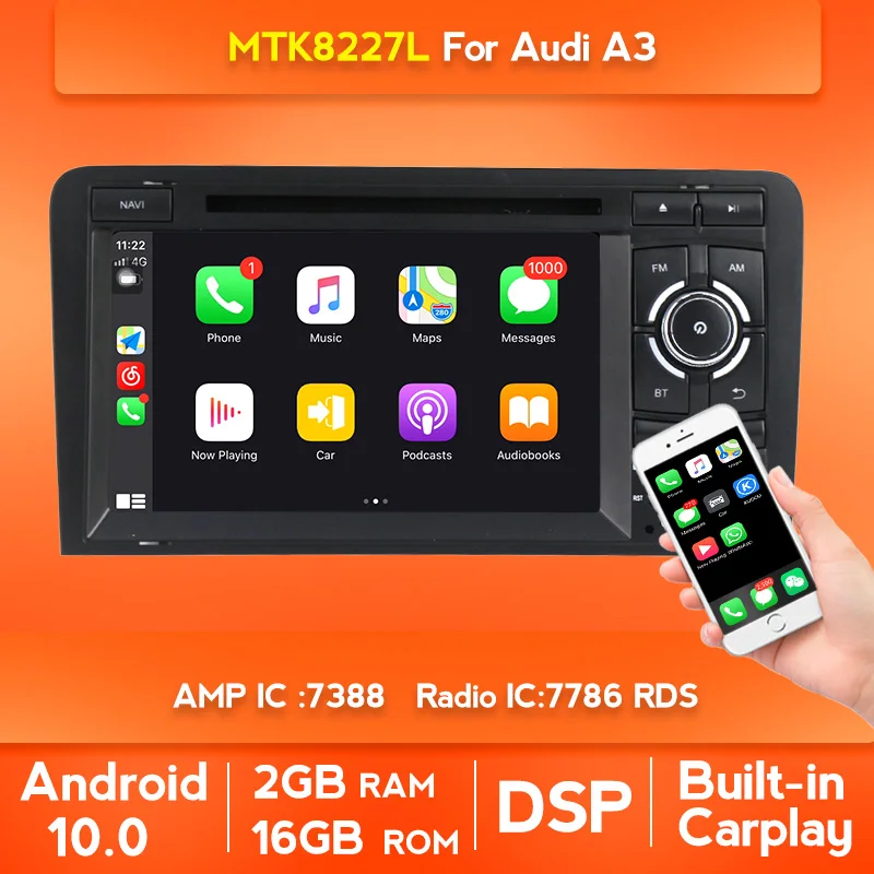 Двойной автомобильный DVD-плеер для Audi A3 8P S3 RS3 2003-2011 Android gps-навигация, радио, стерео Audio DSP Carplay Wifi SWC BT FM