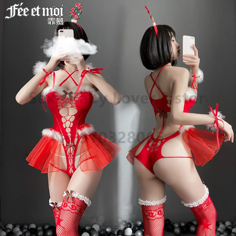 Для взрослых Нижнее белье для игр с кружевом соблазнительное сексуальное нижнее белье шляпа оленьи рога боди чулки в сетку интимные игрушки для женщин с рождеством, Gif