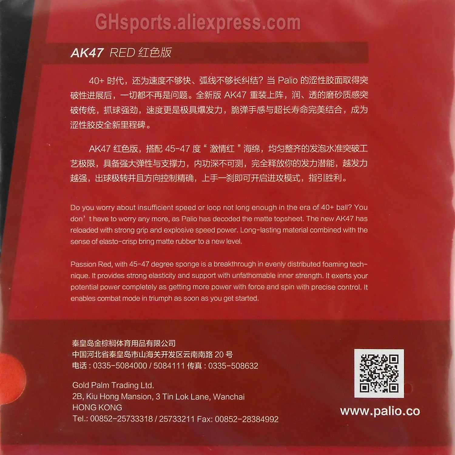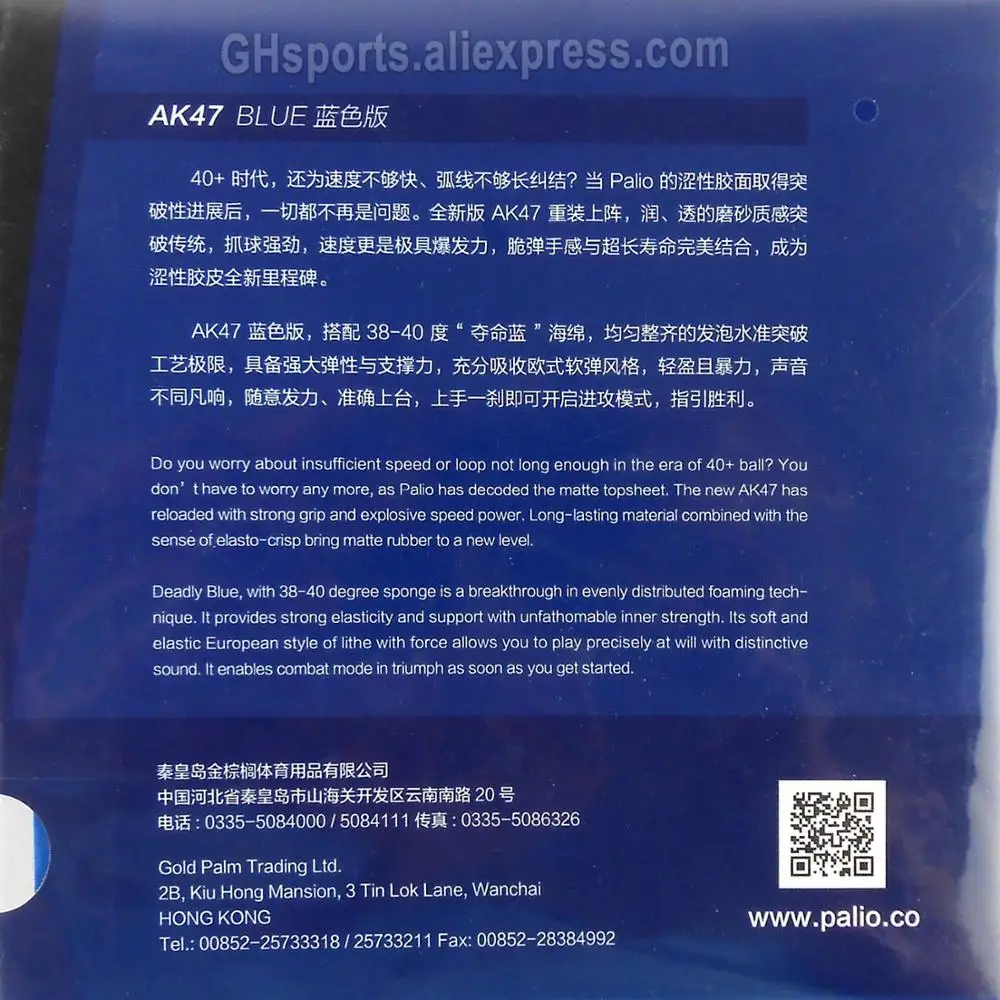 Губка PALIO AK47 для настольного тенниса, краснаясиняя, модель AK 47, оригинальная губка PALIO AK47 для пинг-понга