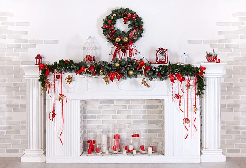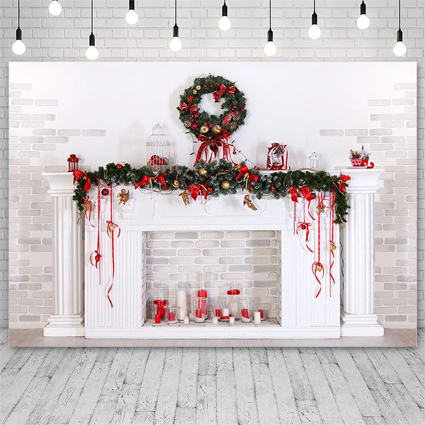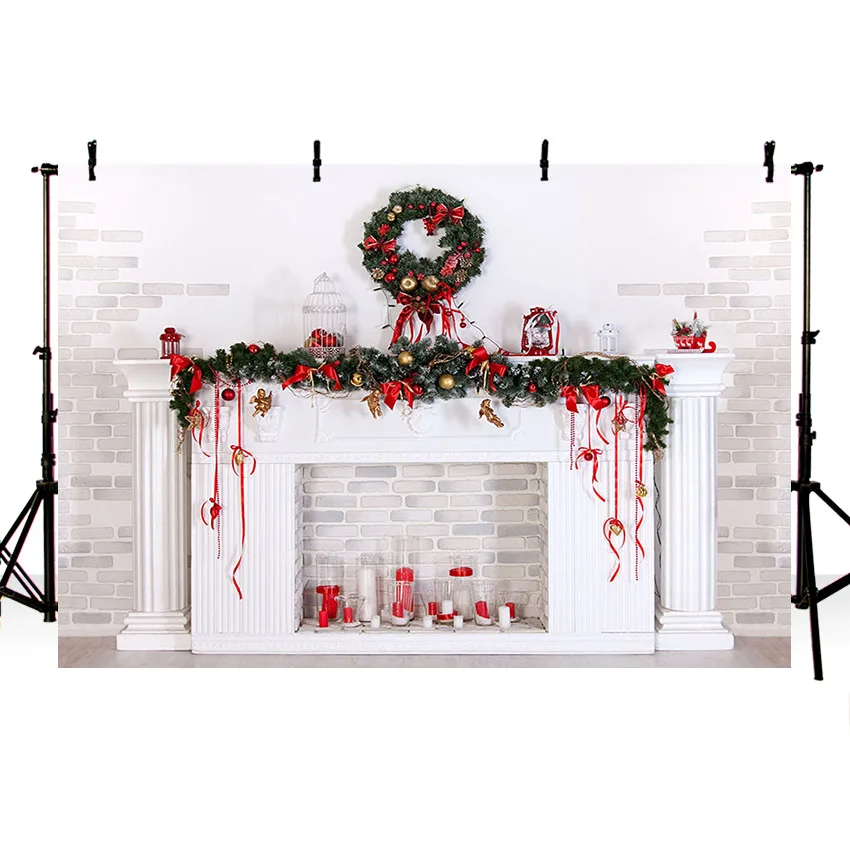 Фоны Avezano с рождественским зимним камин с венком фотофоны фотостудия фотозона фотосессия Декор реквизит