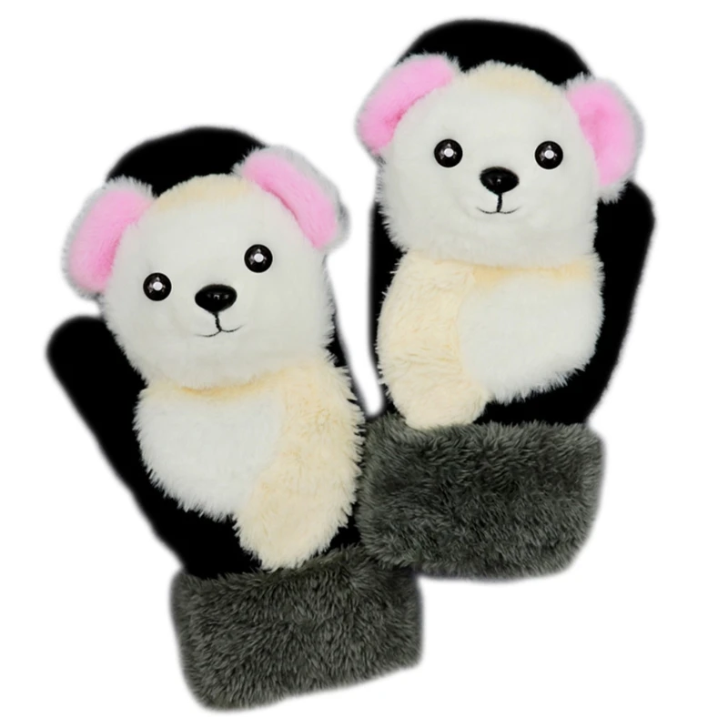 Женские и мужские зимние вязаные перчатки милые 3D пушистые Мультяшные животные Декор утолщенная плюшевая подкладка ветрозащитные теплые варежки