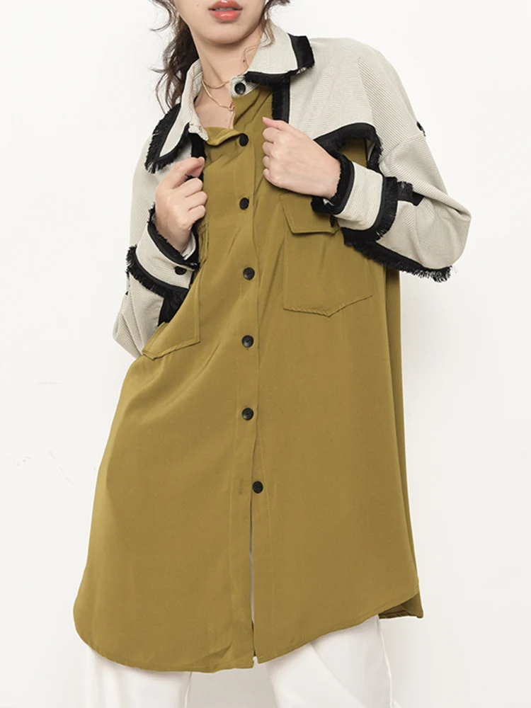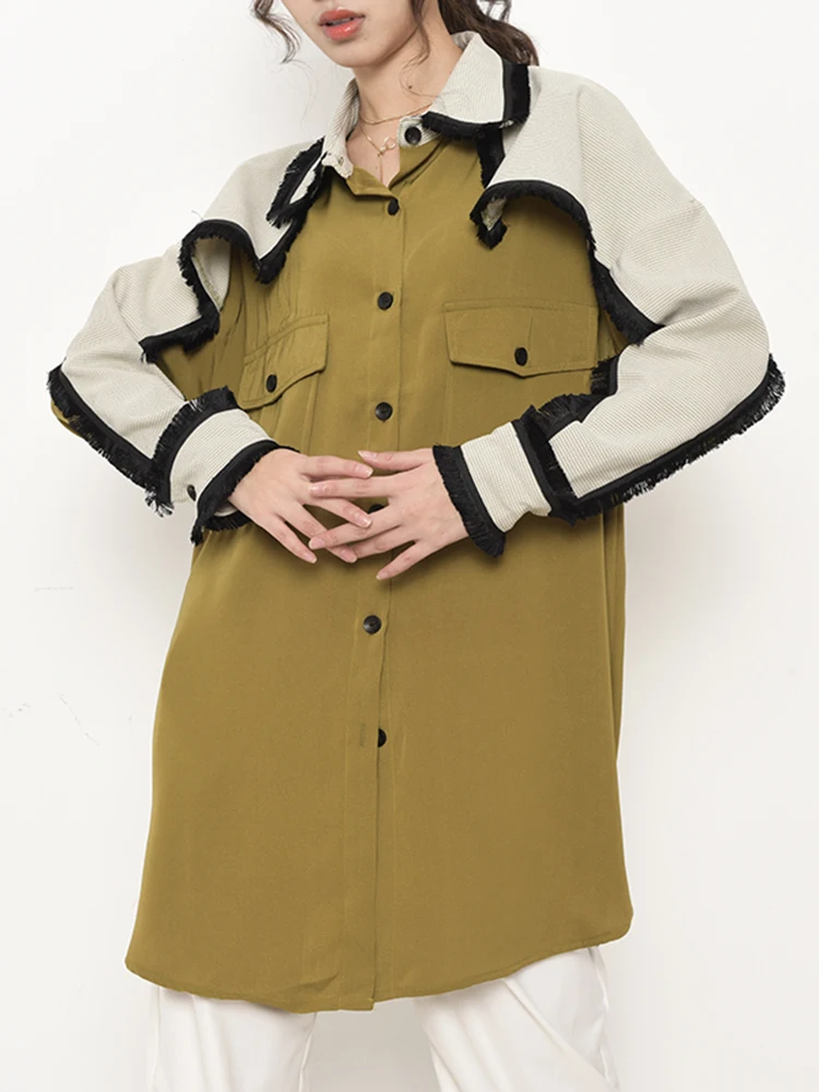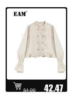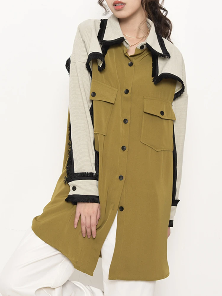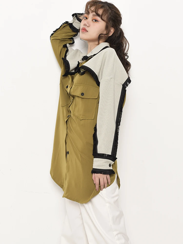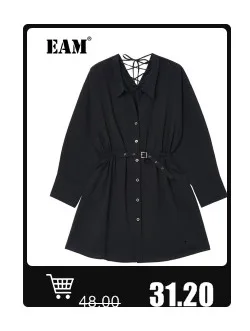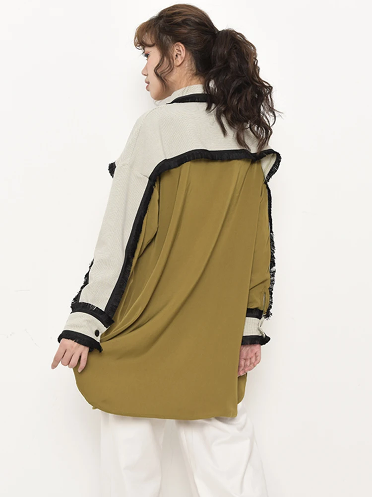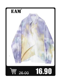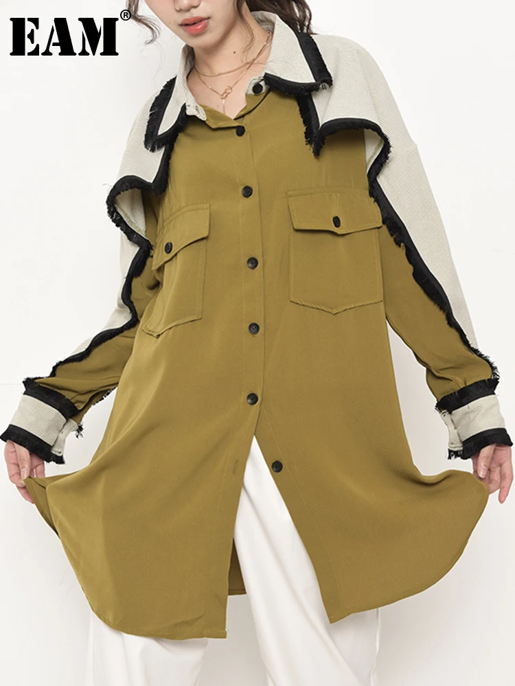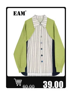 EAM Женская Длинная блузка контрастных цветов большого размера, новая свободная рубашка с отворотом и длинным рукавом, модная демисезонная 2022 1DA3000