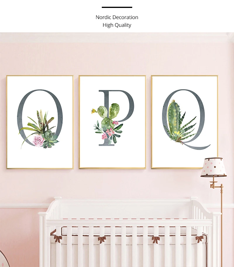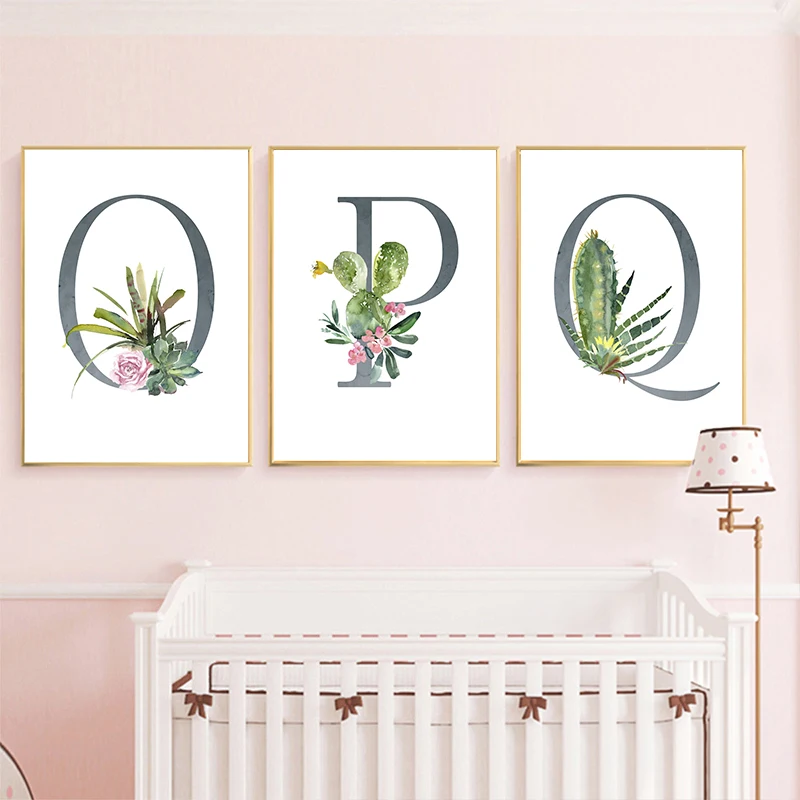 Персонализированный постер с именем на заказ, цветочные буквы, Художественная печать на холсте для детской комнаты, Настенная картина, украшение для детской комнаты, спальни