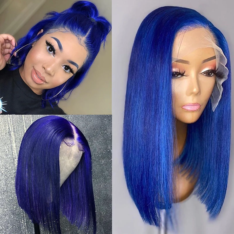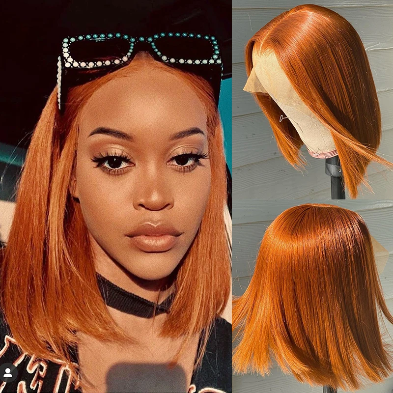 Парики из человеческих волос Orange Short Bob, красные, синие, зеленые человеческие волосы T-Part, парики на сетке естественного цвета, перуанские человеческие волосы, парики на сетке спереди
