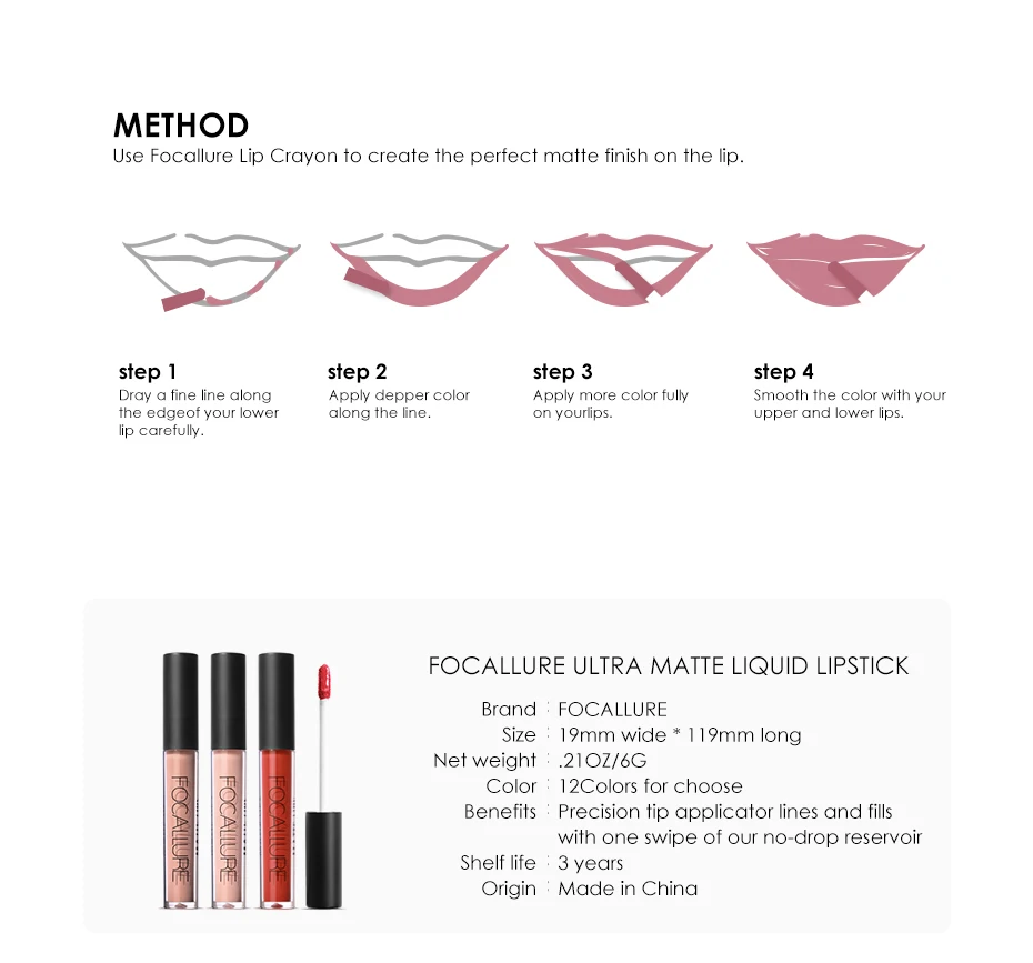 Жидкий, от FOCALLURE помада для макияжа Матовый тинт для губ пикант...