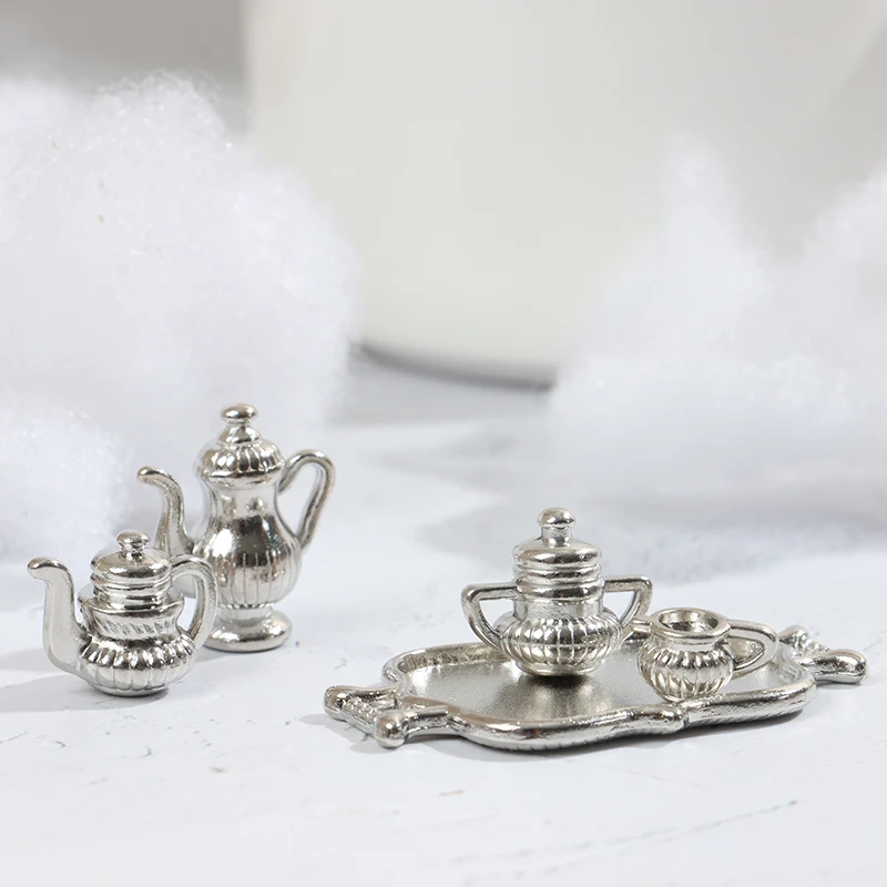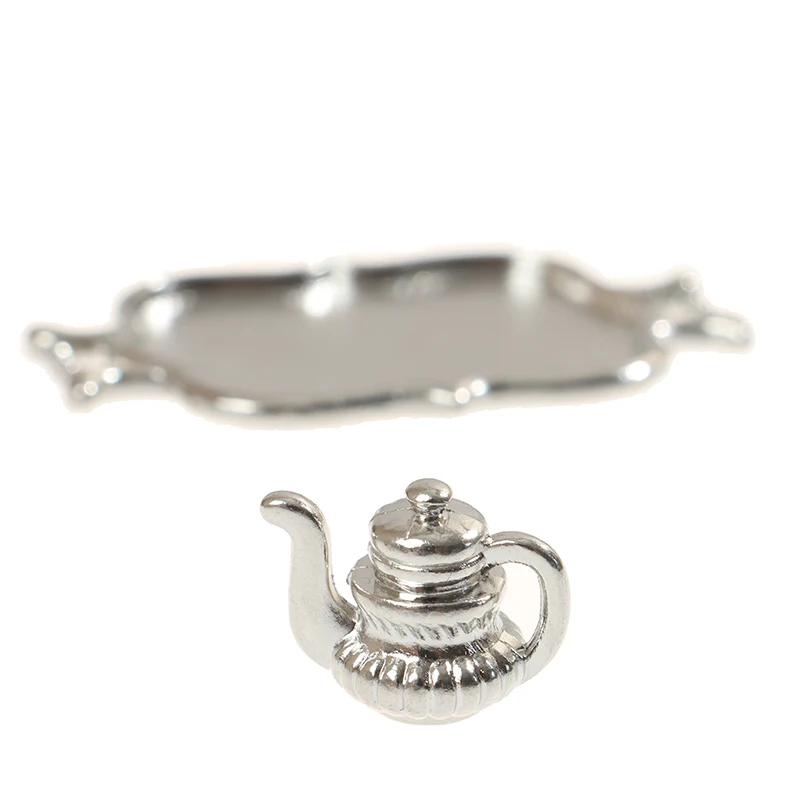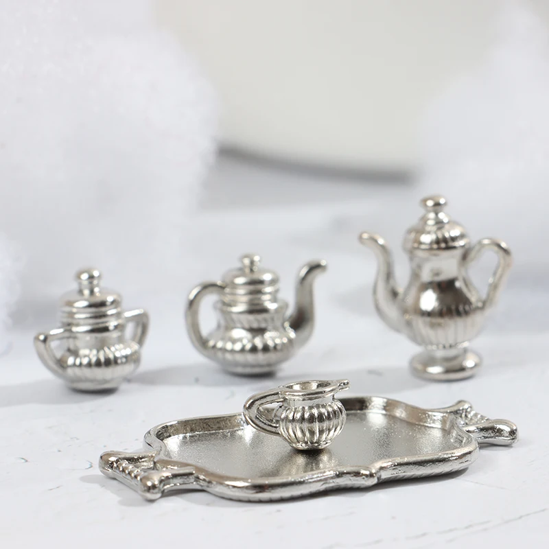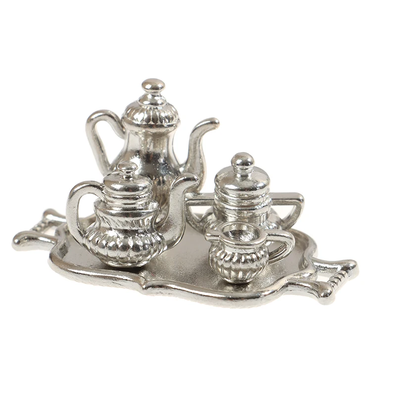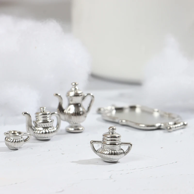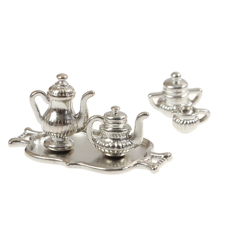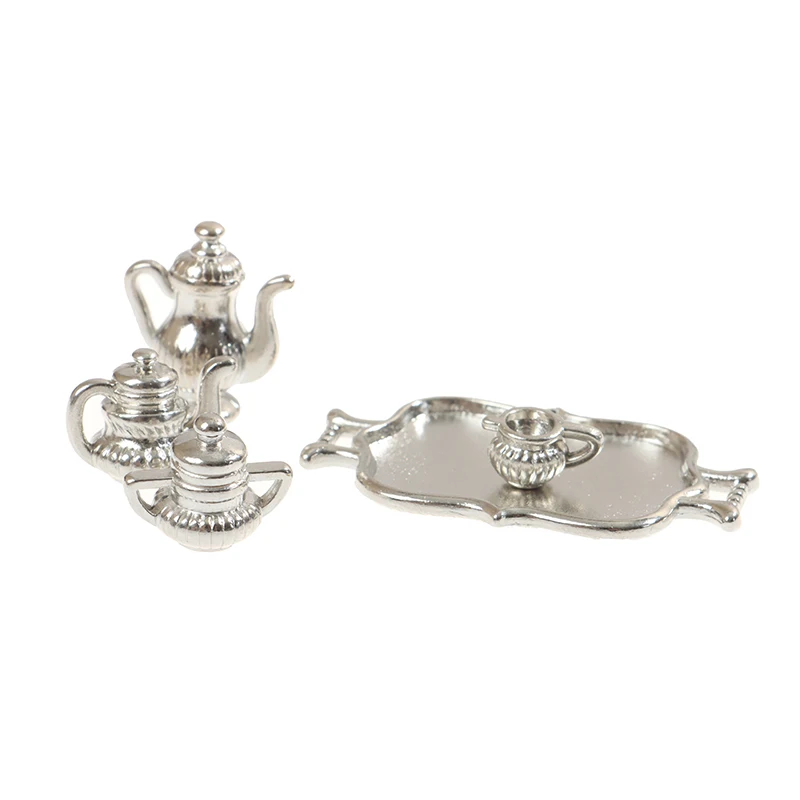 5 шт.компл. 1:12 Кукольный домик Миниатюрный металлический чайный сервиз кофейный сервиз с подносом посуда кухонная мебель серебристый