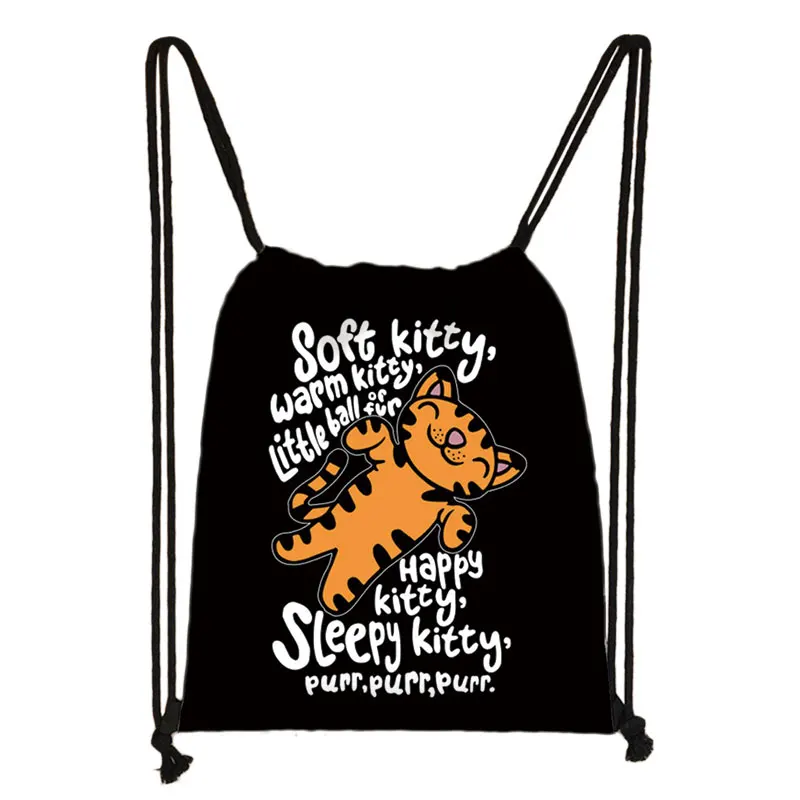 Сумка на шнурке с милым черным котом, женский рюкзак с мягкой спинк...