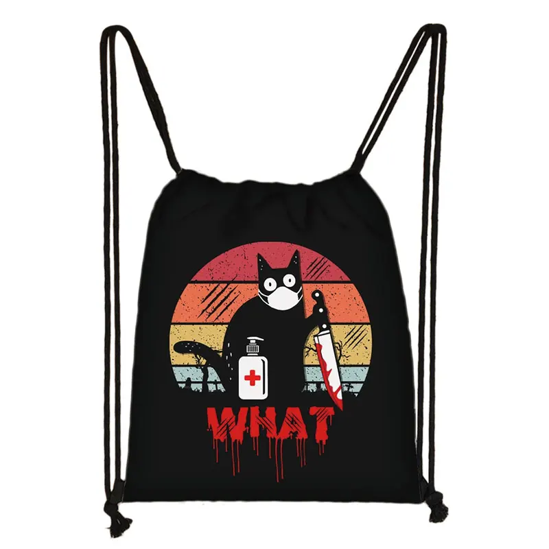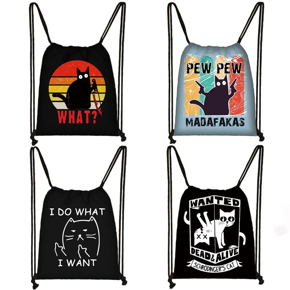 Сумка на шнурке с милым черным котом, женские сумки для покупок, хо...