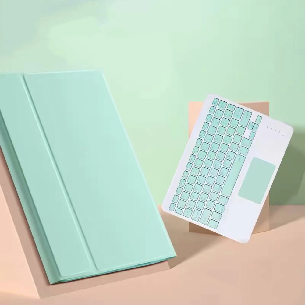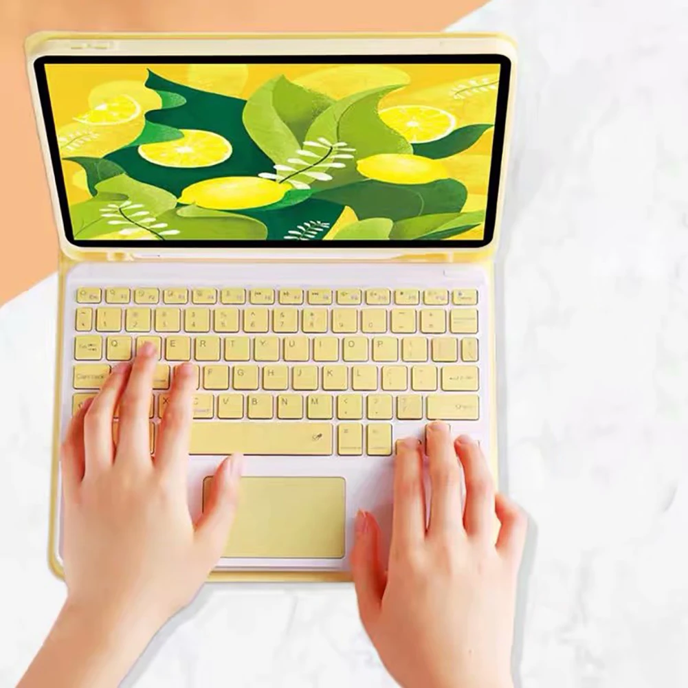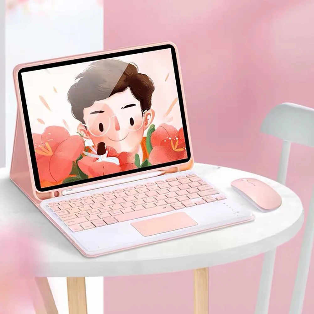 -Беспроводная Клавиатура ультра-тонкая и легкая, легко носить с собой.-Беспроводная Клавиатура ультра-тонкая и легкая, с сенсорной клавиатурой, проста в эксплуатации и переноске.-Встроенный смарт-стенд может обеспечить идеальный угол для эффективности просмотра видео или ввода текста.-Встроенный лоток для ручек.-Падение на 360 ° полностью защищено ударопрочным корпусом.-Сотовая задняя крышка делает тепловыделение проще и прочнее.-Настоящая «жесткая» клавиатура в стиле ноутбука, с использованием высококачественных АБС-материалов, может принести вам наиболее удобный ввод текста.