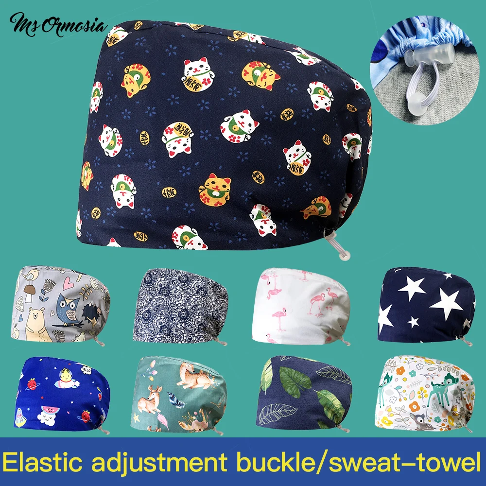 Зуб красоты Рабочая шляпа с впитывает пот абсорбент дышащий Регулируемый эластичный пряжкой и хлопчатобумажными стельками Цветочный принт-фурминатор для домашних животных с эффектом потертости; Женская шапка