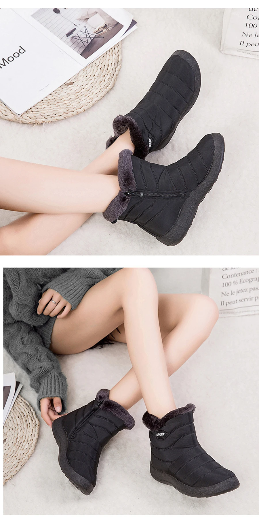 Женские зимние ботинки; Водонепроницаемые зимние ботинки для женщин; Теплые короткие плюшевые зимние ботильоны на меху; Женская обувь размера плюс; Большой размер 43