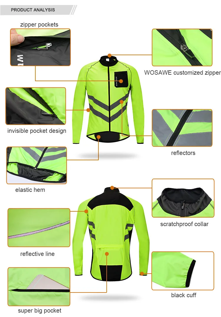 Светоотражающая велосипедная куртка WOSAWE, многофункциональная вет...