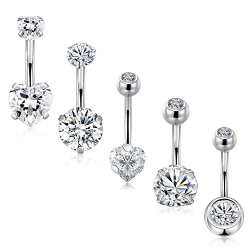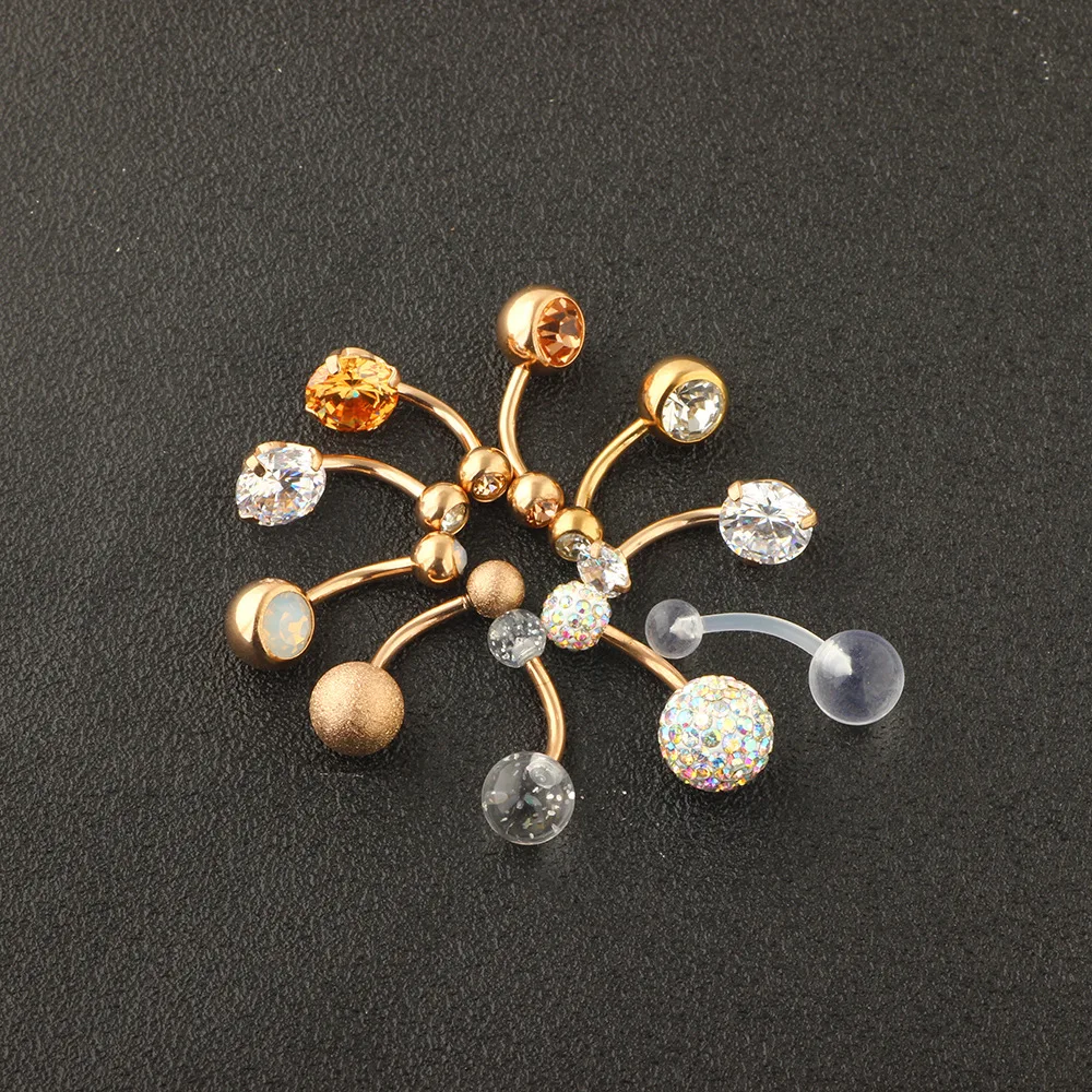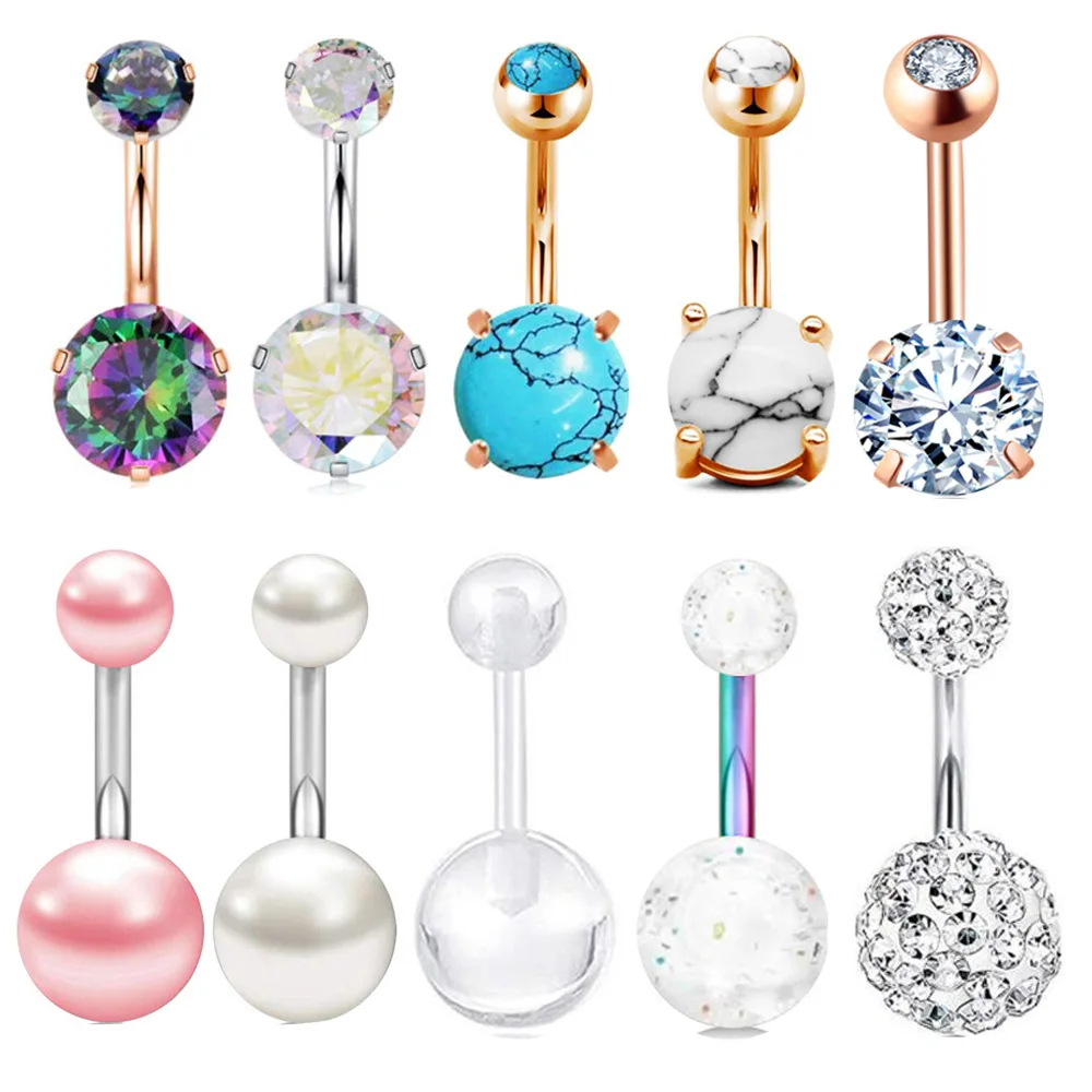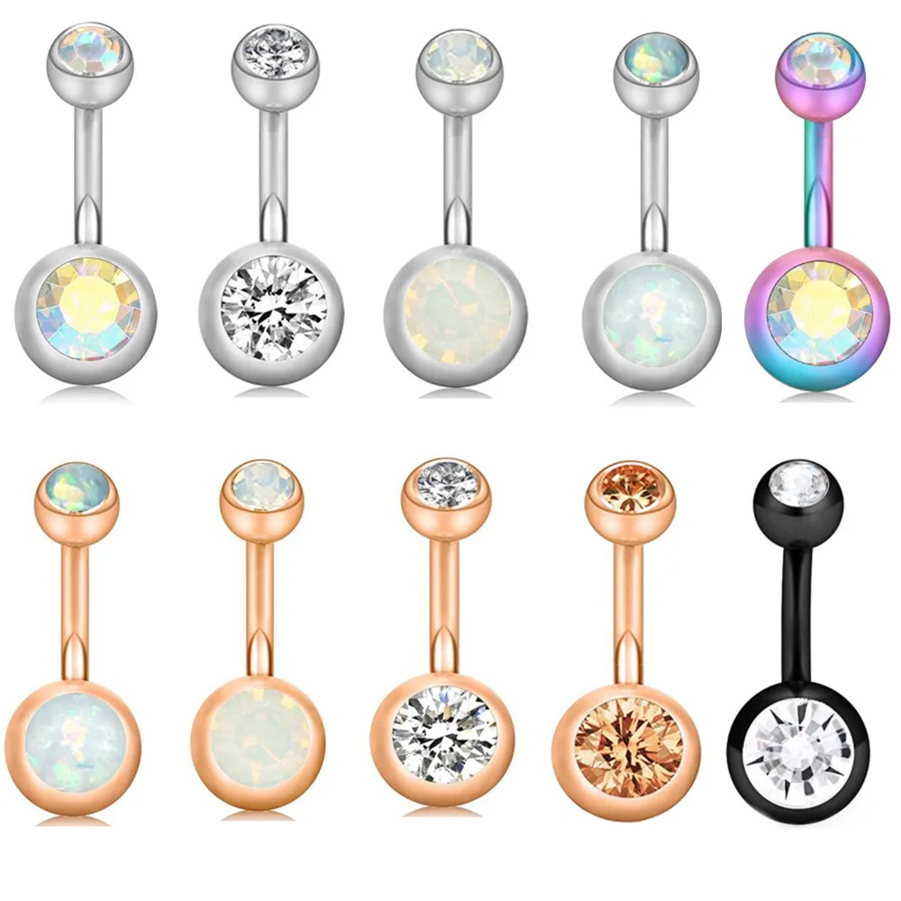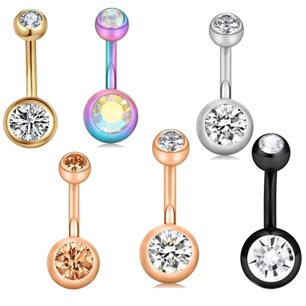 Набор колец для пупка с кристаллами из хирургической стали, блестящее набор для пирсинга для пупка 14 г