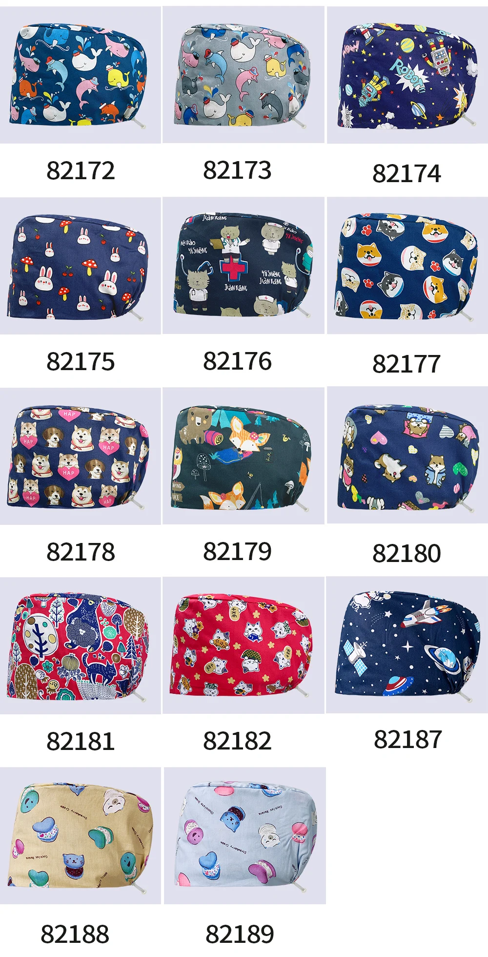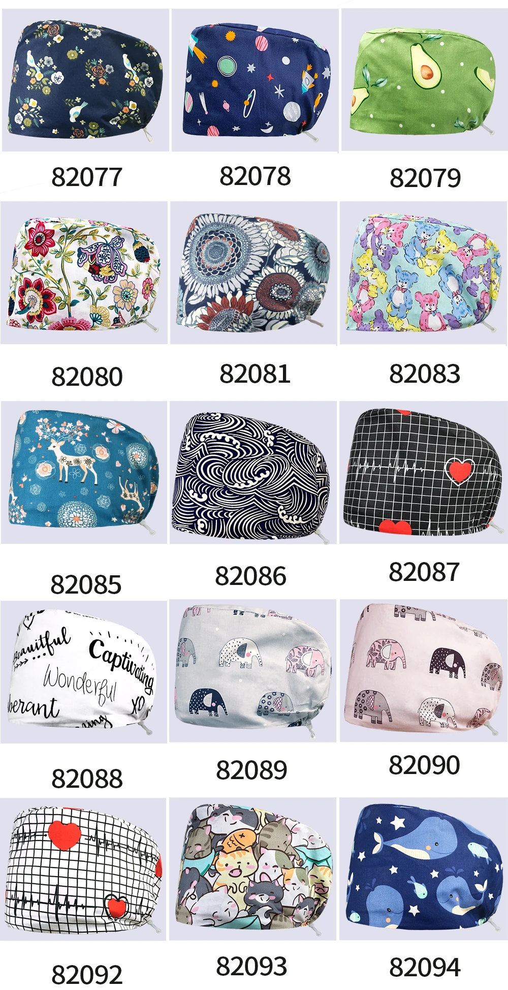 Рабочая шляпа для красоты домашних животных, регулируемая поглощающая пот шапка с мультяшным принтом, 100% хлопок, шапка для медицинского обслуживания, женская шапка, оптовая цена